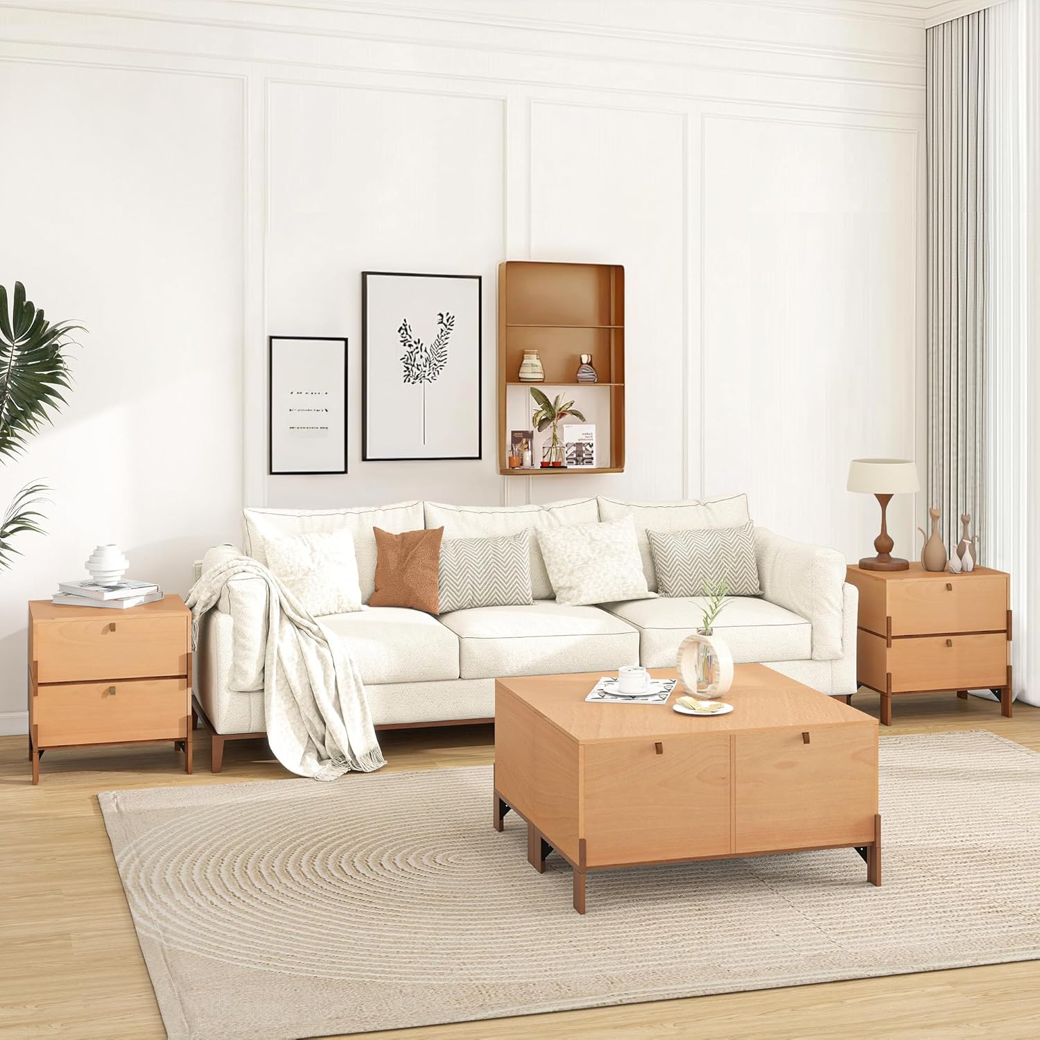 - 【User-Friendly Material】This eco-friendly side table features E1-certified plywood with natural wood veneer, showcasing the natural wood grain. The surface is coated with handcrafted wood wax oil, forming a protective film that is both moisture-resistant and scratch-resistant. Certified non-toxic by SGS with zero heavy metals. Constructed with solid wood red beech strips and stands, this cabinet combines eco-conscious quality, aesthetic design, and practical function for a healthy home