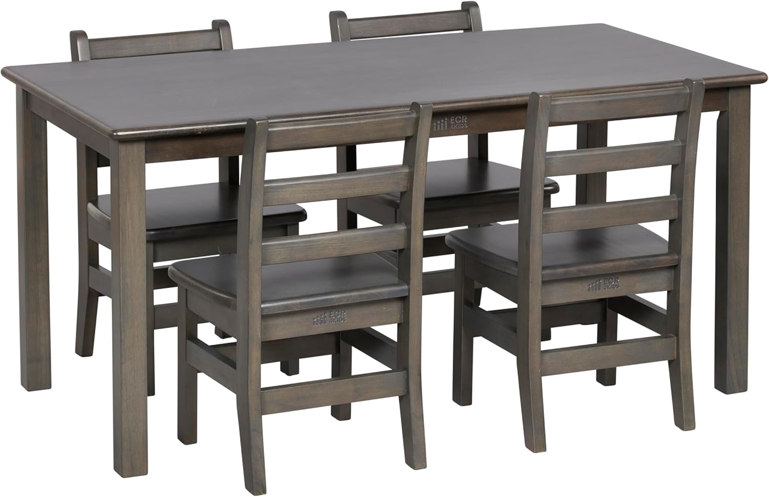ECR4Kids 24in x 48in Rectangular Hardwood Table and Chair Set, 12in Seat Height, Kids Furniture, Grey Wash