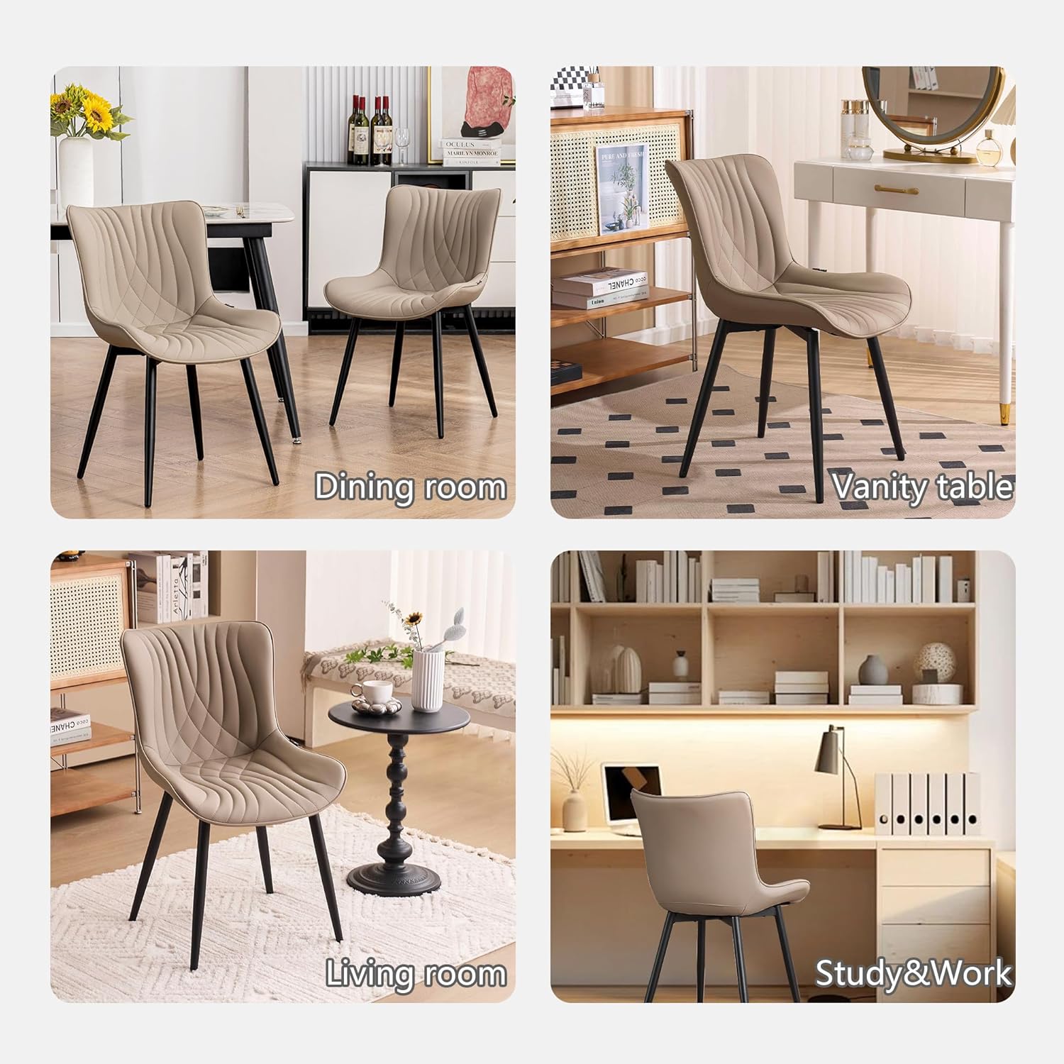 Kidol & Shellder Khaki Dining Chairs Set of 2,Faux Leather Upholstered Mid Century Modern Kitchen&Dining Room Chair with Back,Ergonomic Armless Vanity&Living Room Chair with Metal Legs