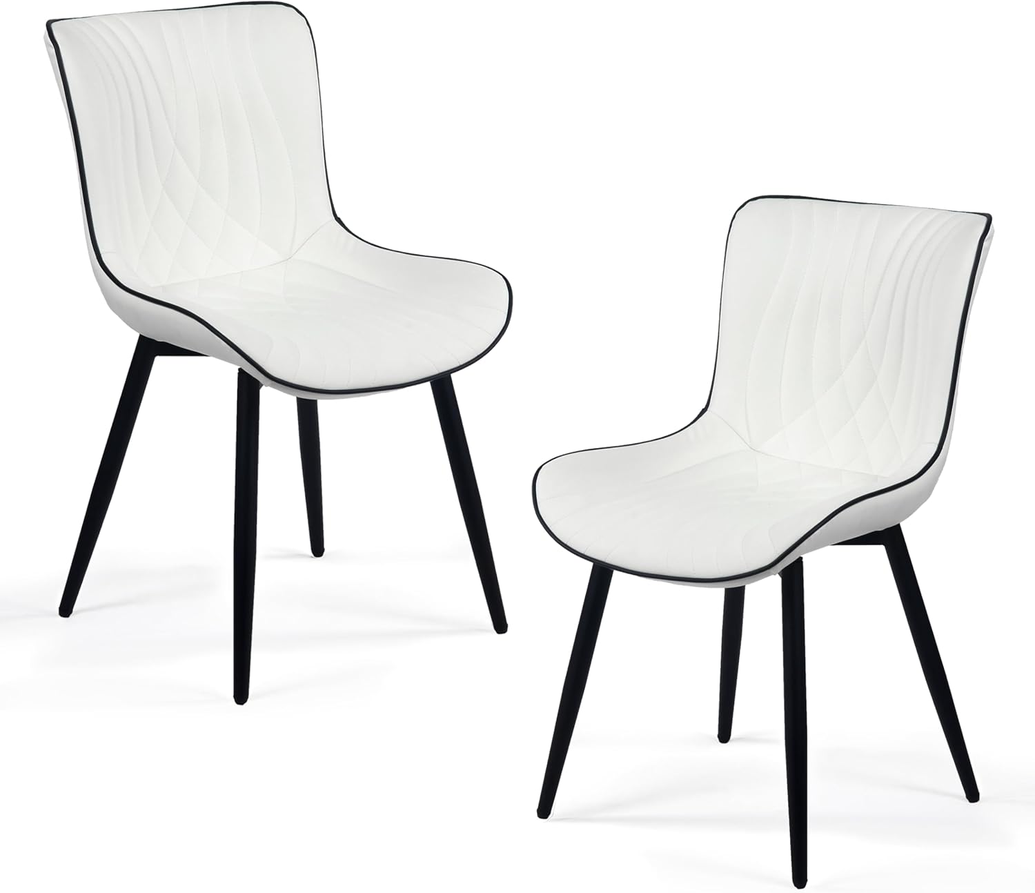 Kidol & Shellder White Dining Chairs Set of 2,Faux Leather Upholstered Mid Century Modern Kitchen&Dining Room Chair with Back,Ergonomic Armless Vanity&Living Room Chair with Metal Legs