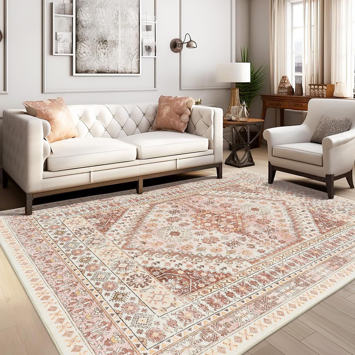 zesthome 6x9 Area Rug, Super Soft Washable Rugs for Living Room, Non-Slip Stain Resistant Vintage Rugs, Ultra-Thin Large Area Rugs