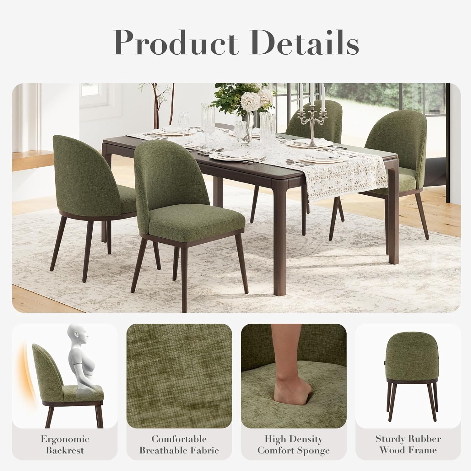 - Generous Size for Maximum Comfort: The fabric dining room chairs are designed with a large seat and ample dimensions, allowing for optimal comfort during meals or gatherings. The high backrest with its graceful curvature offers both visual appeal and support for long periods of sitting