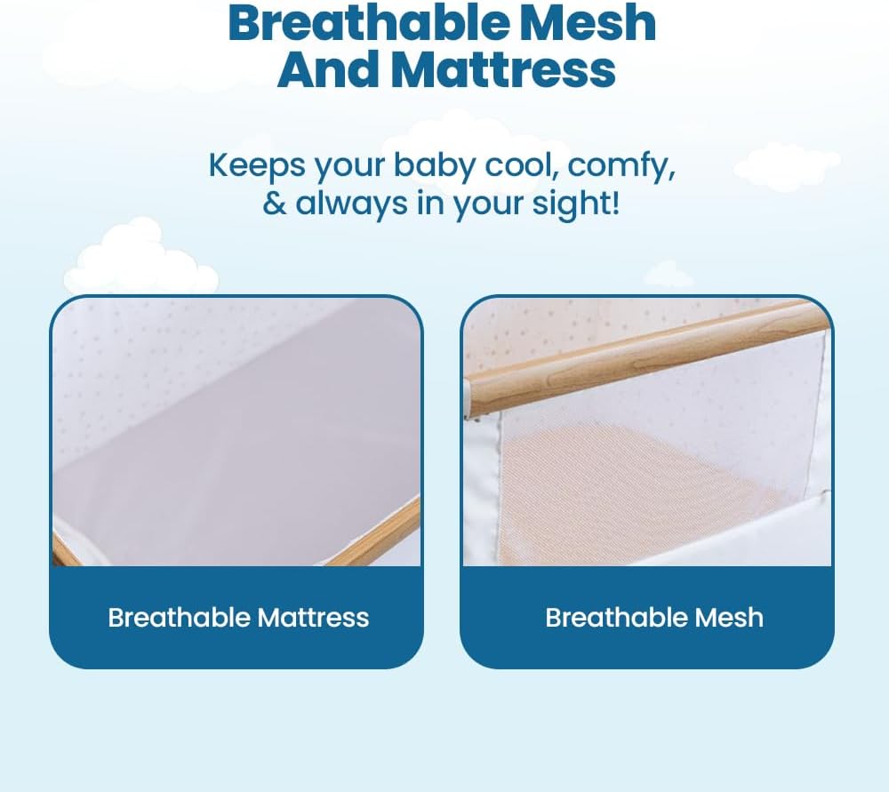 - Safe & Comfortable Bedside Sleeper: Equipped with breathable mesh panels and a strong frame, this bassinet bedside sleeper ensures maximum airflow and a secure, restful environment for your baby.