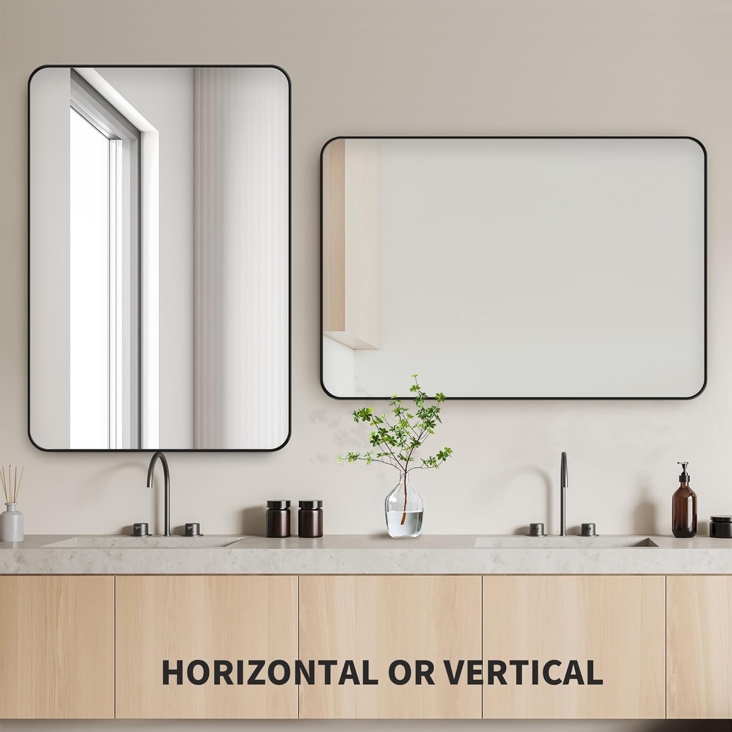 - 【HIGH QUALITY MIRRORS】 This black bathroom vanity mirror is made of special tempered glass lenses, which reflect brightly without distortion, produce clear images, and are unbreakable, sturdy and durable.