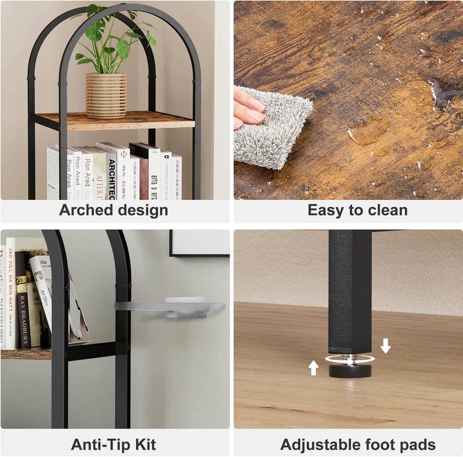 Homhedy 6-Tier Narrow Bookshelf Arched Display Racks, Wood and Metal Bookcase, Tall Bookshelf, Industrial Display Standing Shelf Unit, for Home Office, Living Room, Bedroom, Bathroom