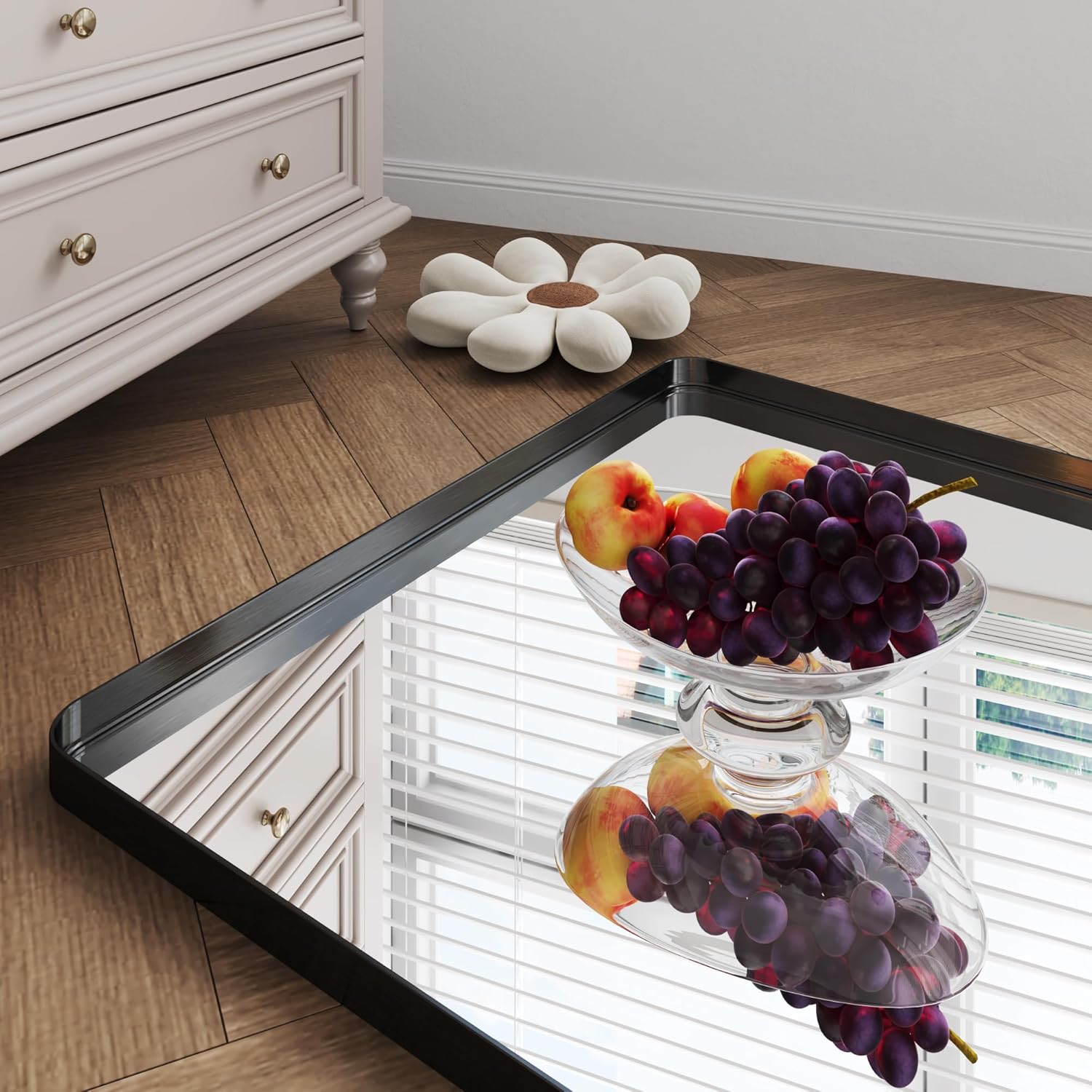 - 【Nano Glass, High Definition Imaging】The black vanity mirror, is made of advanced nano glass material, which makes the large bathroom mirror lighter and looks more beautiful, also Nanoglass is more flexible, this black bathroom mirror is not easy to break, and even if it is broken, it won't splash,this kind of nano glass has a newer imaging effect, higher clarity, and won't be distorted
