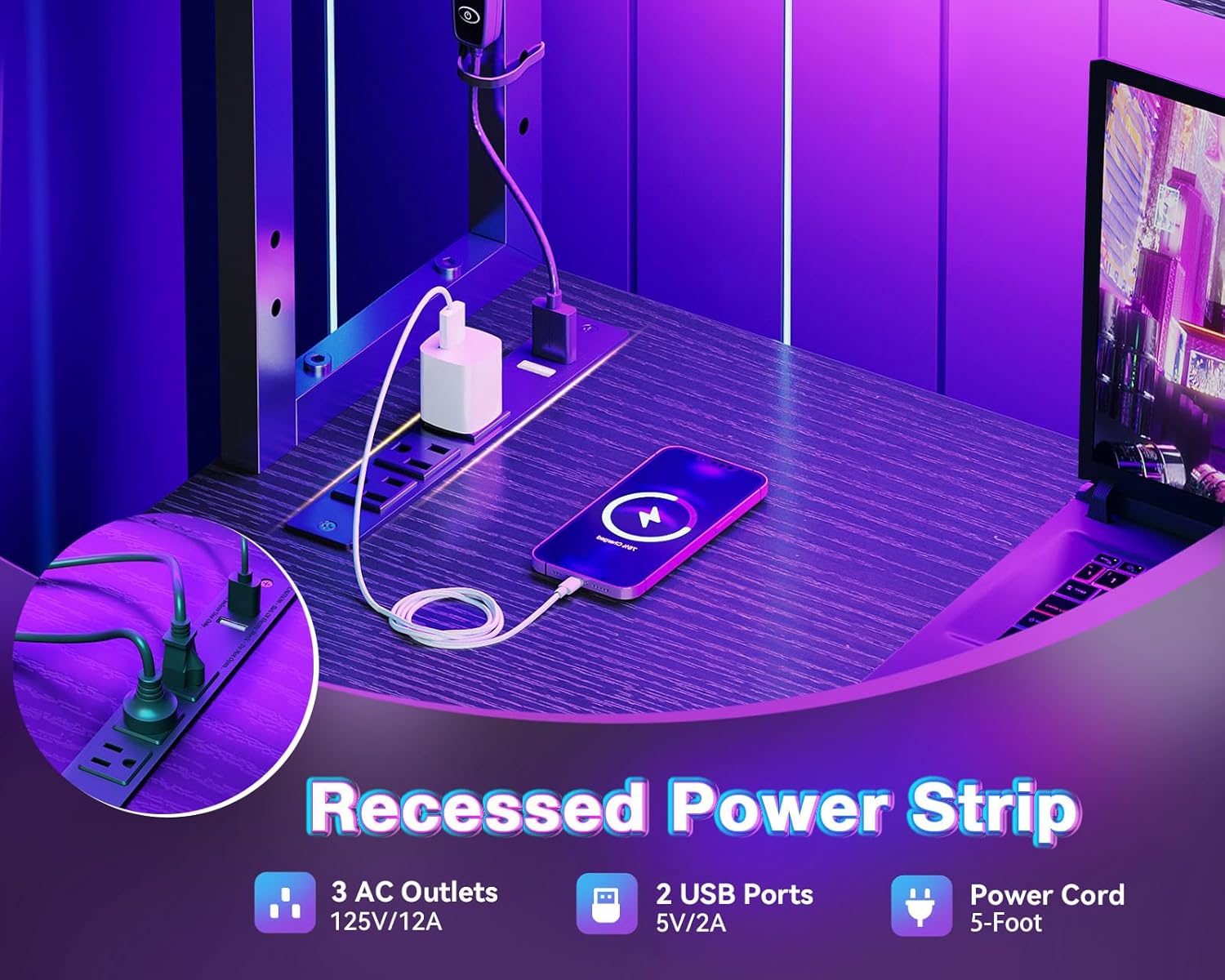 - 【Power Outlets & Charging Ports】 AODK computer desk is equipped with 3 power outlets & 2 USB charging ports for your electronic device. You can easily and conveniently charge smart phone, gaming gear and Bluetooth devices when you are working or playing games. Power cord allows you to place this small computer desk wherever you need.