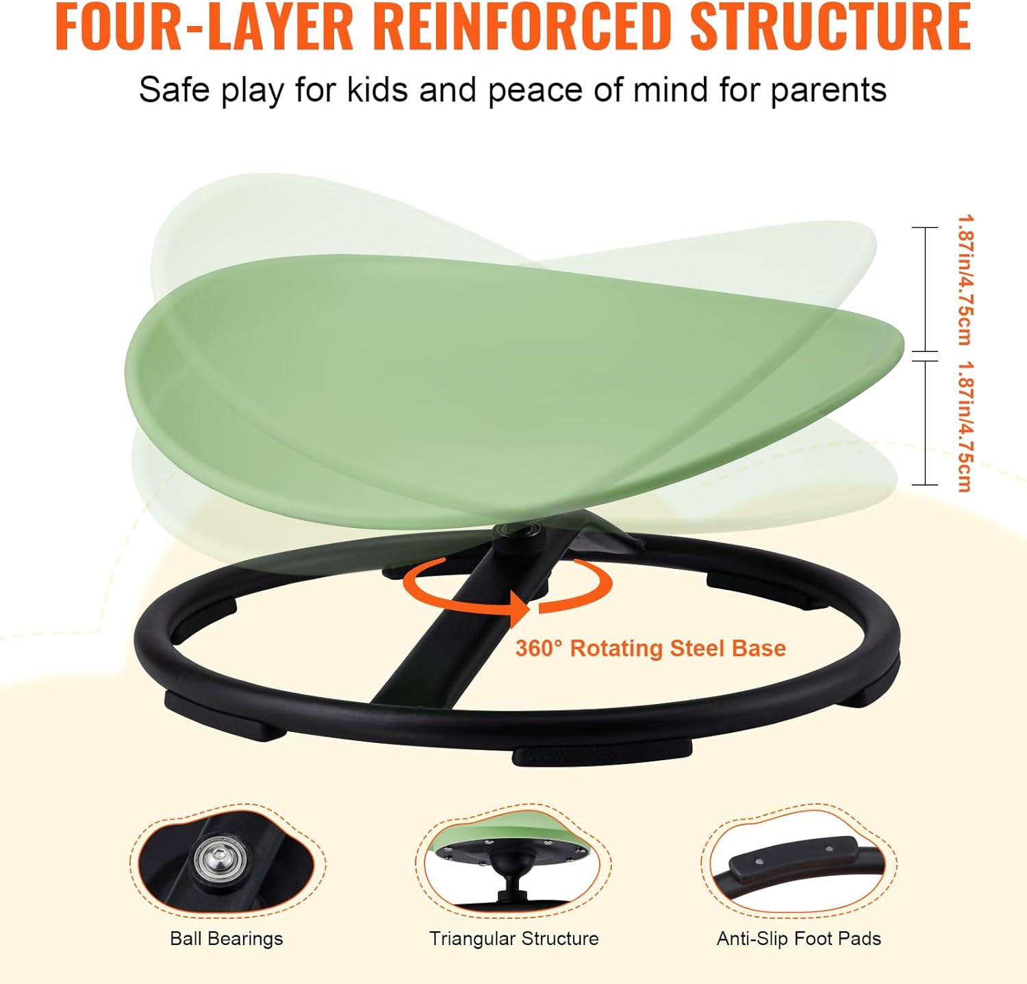 VEVOR Kids Swivel Chair, 220 LBS Capacity, Sensory Spinning Chair, Autistic Kids Sensory Toy with Non-Slip Metal Base, Toddler Sit and Spin for Coordination Balance Focus Training Green
