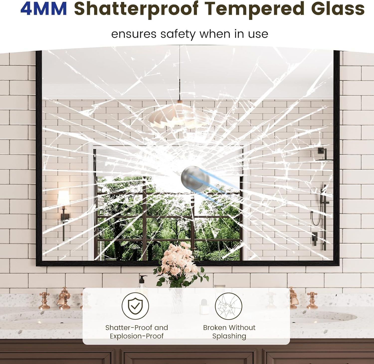 - 【Shatterproof Material】Our matte black framed mirror is made of 4MM tempered glass, shatterproof, explosion-proof, much sturdy and durable. The mirror is also affixed with shatterproof film, which makes it fixes the broken glass, and much safer to use and easy to clean;