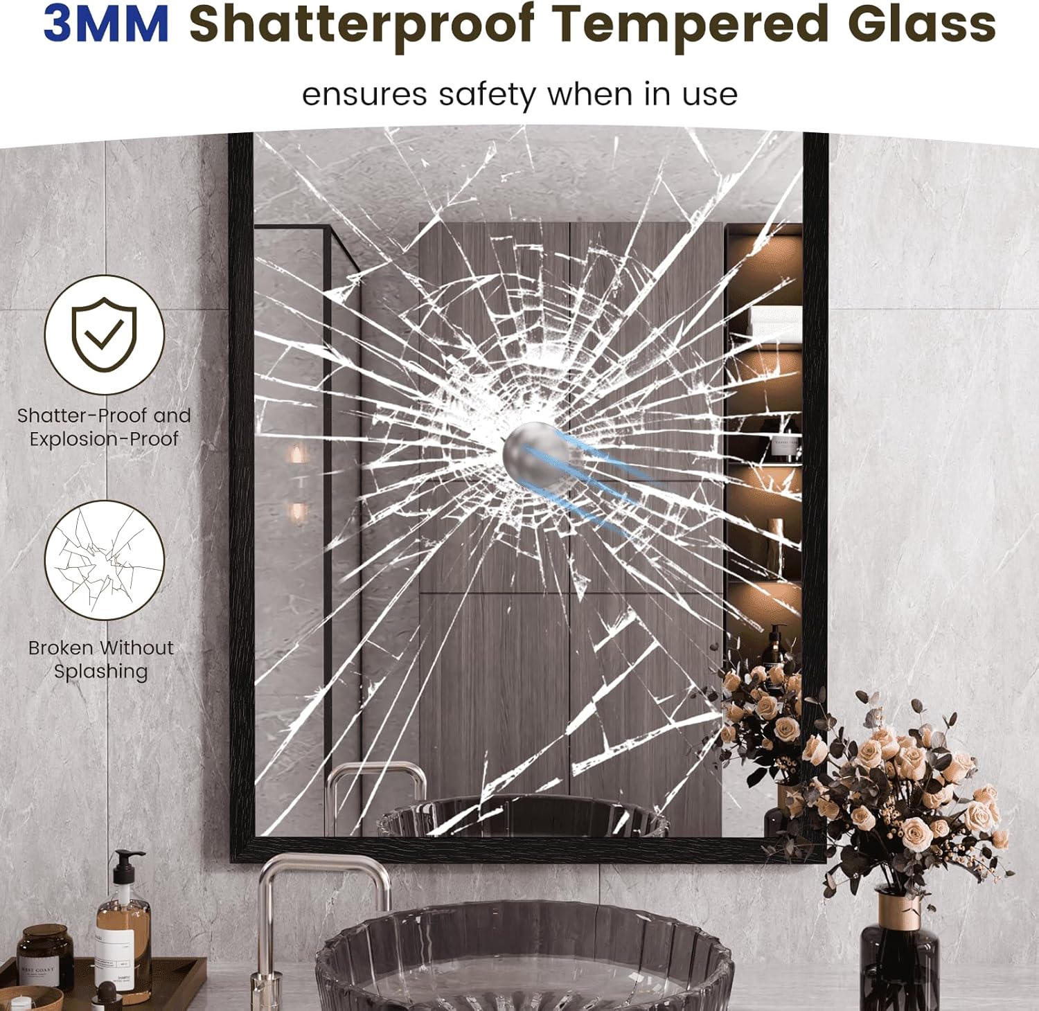 - 【Shatterproof Material】Our matte black framed mirror is made of 4MM tempered glass, shatterproof, explosion-proof, much sturdy and durable. The mirror is also affixed with shatterproof film, which makes it fixes the broken glass, and much safer to use and easy to clean;