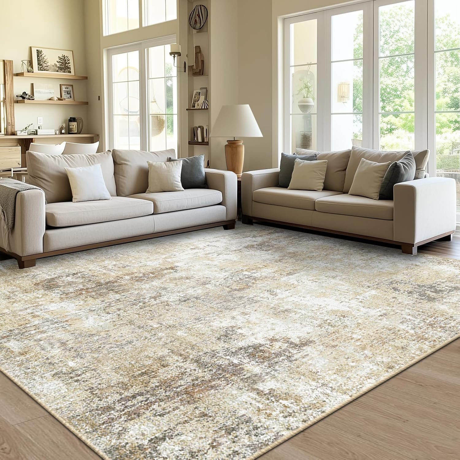 Washable Area Rugs 8'x10' Non-Slip Modern Abstract Soft for Living Room Entryway Bedroom Nursery, Print Pattern, Neutral Brown Gray