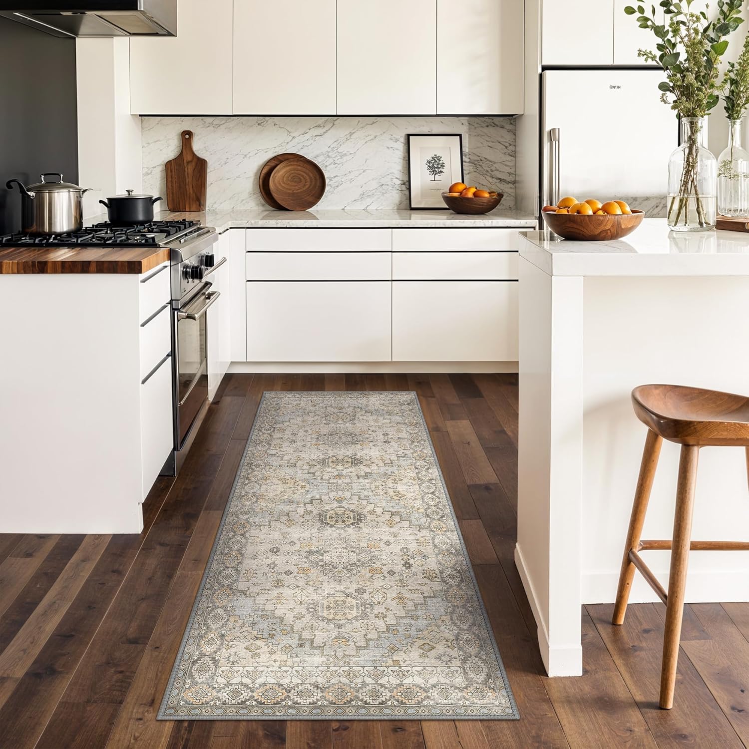 - Non-Slip Backing: Our washable rugs have a high-quality non-slip backing that secures floors from scratches and keeps the rug securely in place, avoiding any shifting or slipping. It serves as a comfortable, reliable and stable cushioning for frequently used areas such as the living room, dining room, kitchen, and hallways. Prolonged placement will not discolor your flooring.