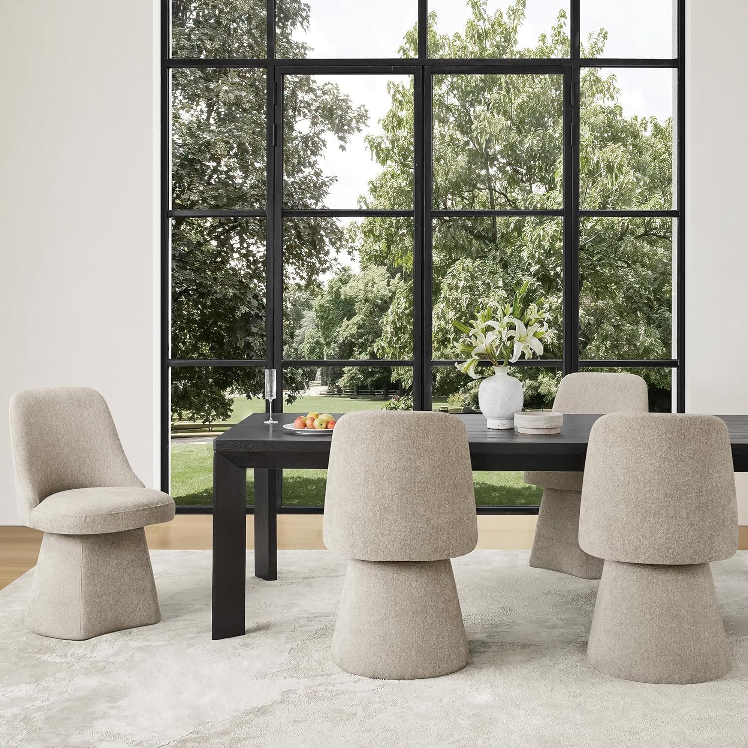 - 【Enjoy Dining】Dinner conversations will linger because your guests are so comfortable around your table. The Upholstered chairs are fully upholstered in linen fabric with deep cushions and a softly curved high back. The chair sits on a conical base that makes the appearance elegant and beautifully.