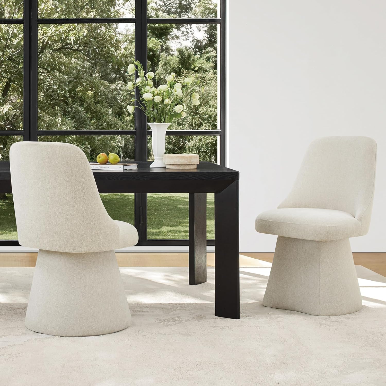 - 【Take a Spin】Designed with a deep inviting seat and smooth swivel function,this swivel chair stays comfy at every turn and is versatile enough for your dining room,living area,reading nook,bedroom or anywhere you want.Sculpted with an architectural silhouette and chunky base.