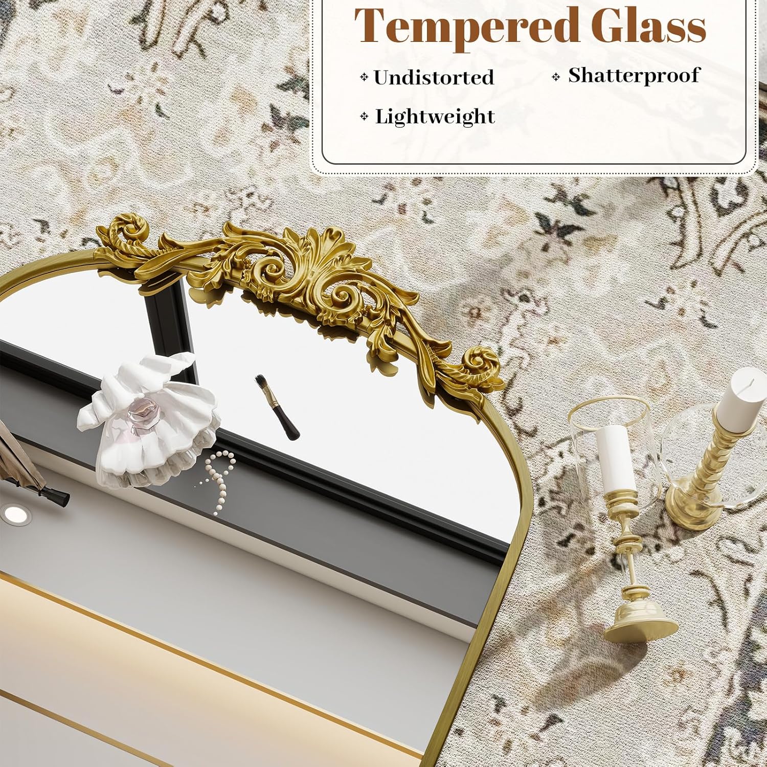 - Vintage Floral Carved Design: Featuring exquisite carved floral patterns and a rustic metal frame, this antique arched mirror adds farmhouse charm to any space. Ideal for traditional or modern decorative wall mirror