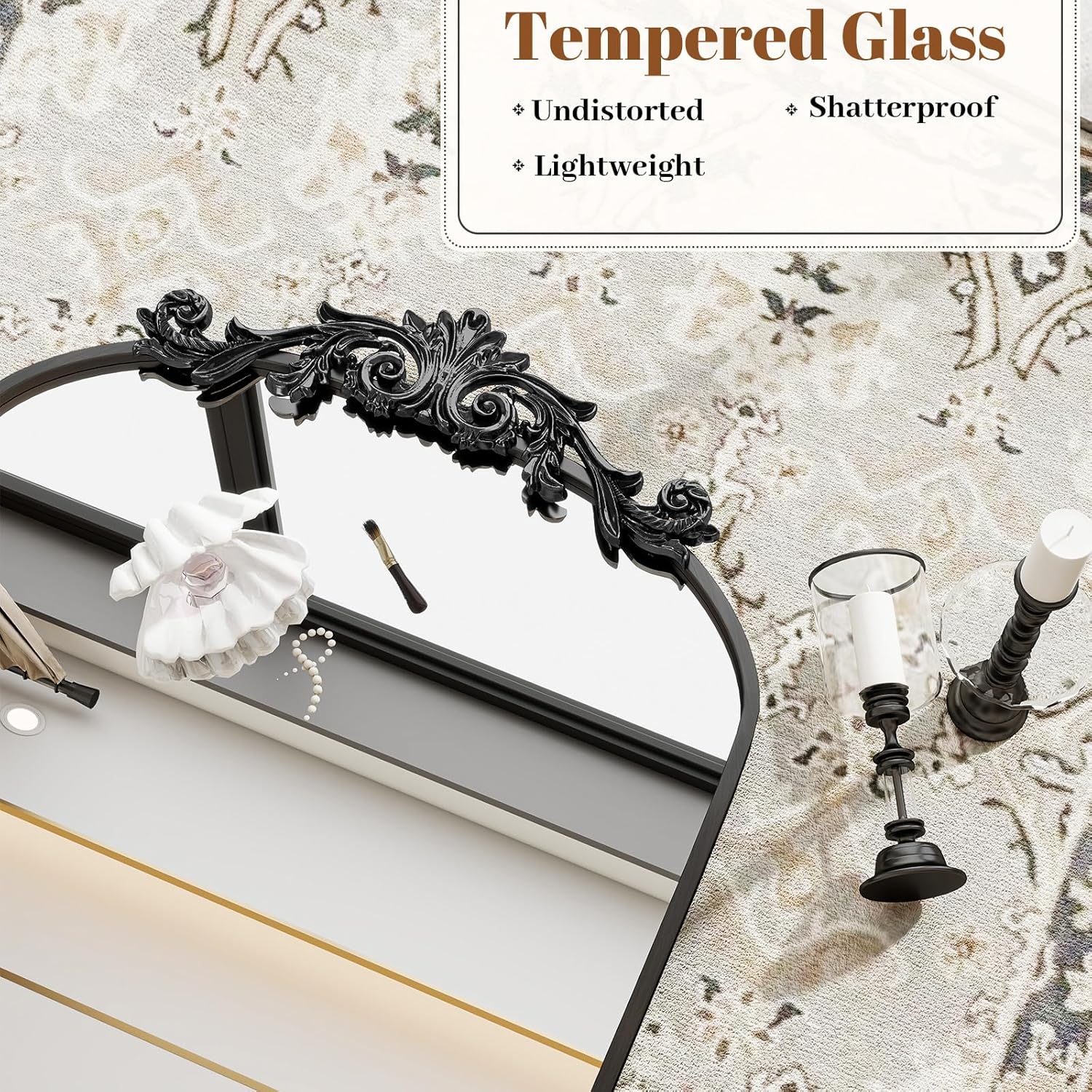 - Vintage Ornate Elegant Wall Mirror: The top of the arch wall mounted mirror is slightly curved featuring exquisite vintage engraved decoration. It's a gorgeousness that embraces traditional features that you will fall in love with
