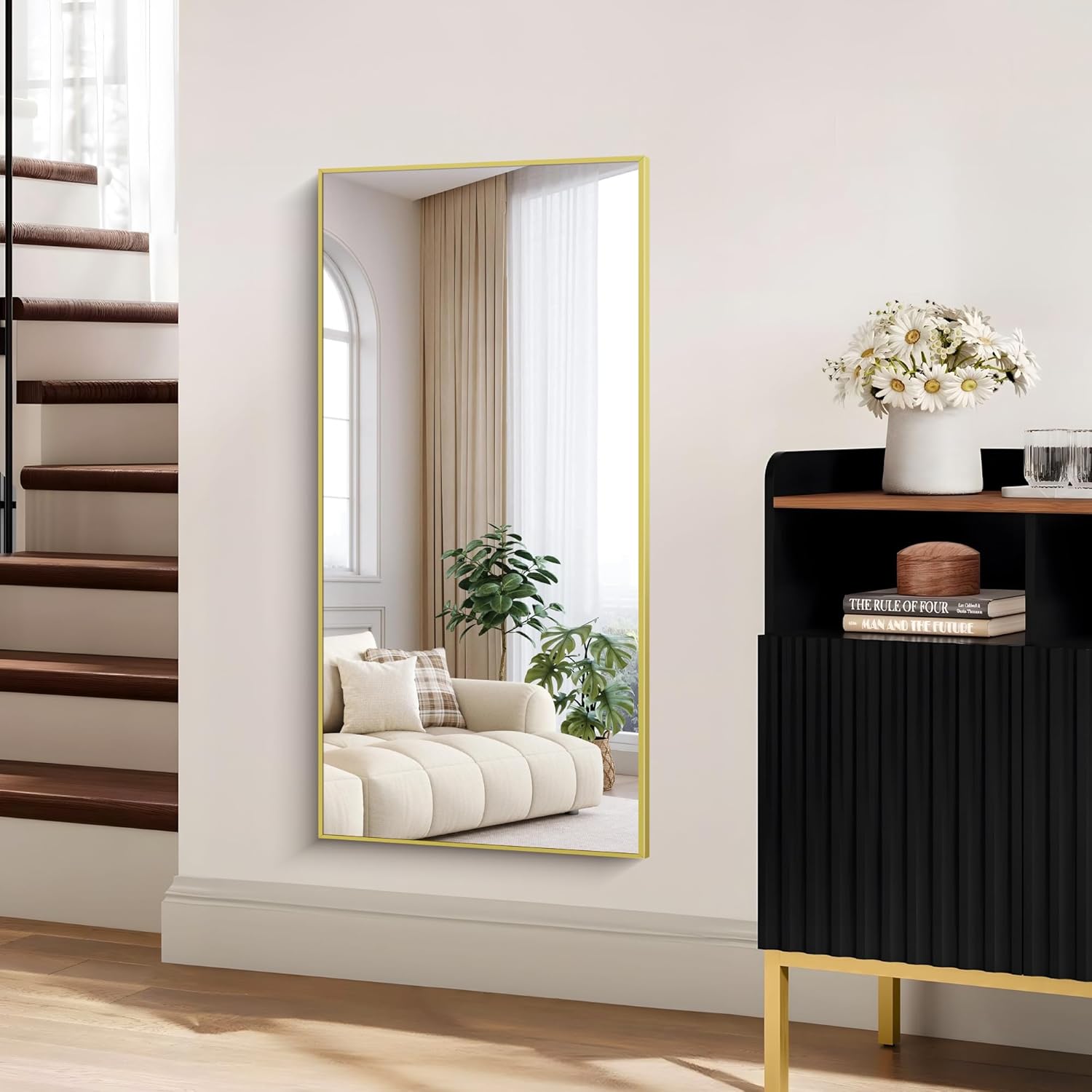 KOCUUY 24x48 Inch Large Gold Wall Mounted Mirror,Aluminum Framed Decorative Rectangular Bathroom Mirror for Wall Over Sink,Vanity Mirror for Bedroom Living Room Bathroom,Functional Oversized Mirror