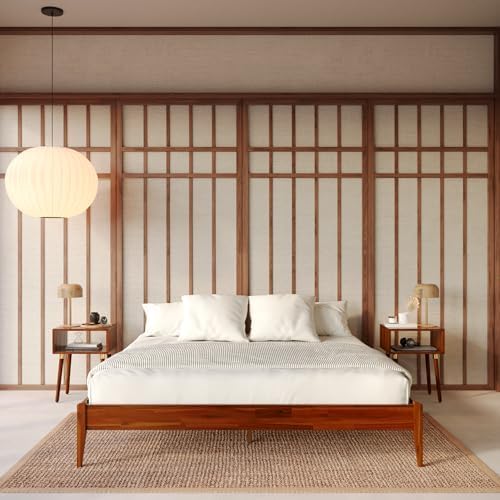 - DURABLE SOLID DESIGN: The solid wood king bed frame wood, wooden bed frame king platform bed frame without headboard is made from solid wood with a thick wooden frame and tapered leg design for a strong elegant feel; Power coating iron frame helps to increase the durability of the product; Supporting up to 800 pounds for King mid century modern bed frame, Queen boho bed frame, Full rustic bed frame and 350 pounds for Twin driftwood bed frame