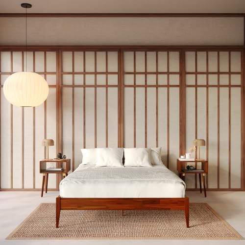 - DURABLE SOLID DESIGN: The bed is made from solid wood with a thick wooden frame and tapered leg design for a strong elegant feel; Power coating iron frame helps to increase the durability of the product; Supporting up to 800 pounds for King, Queen, Full size and 350 pounds for Twin size