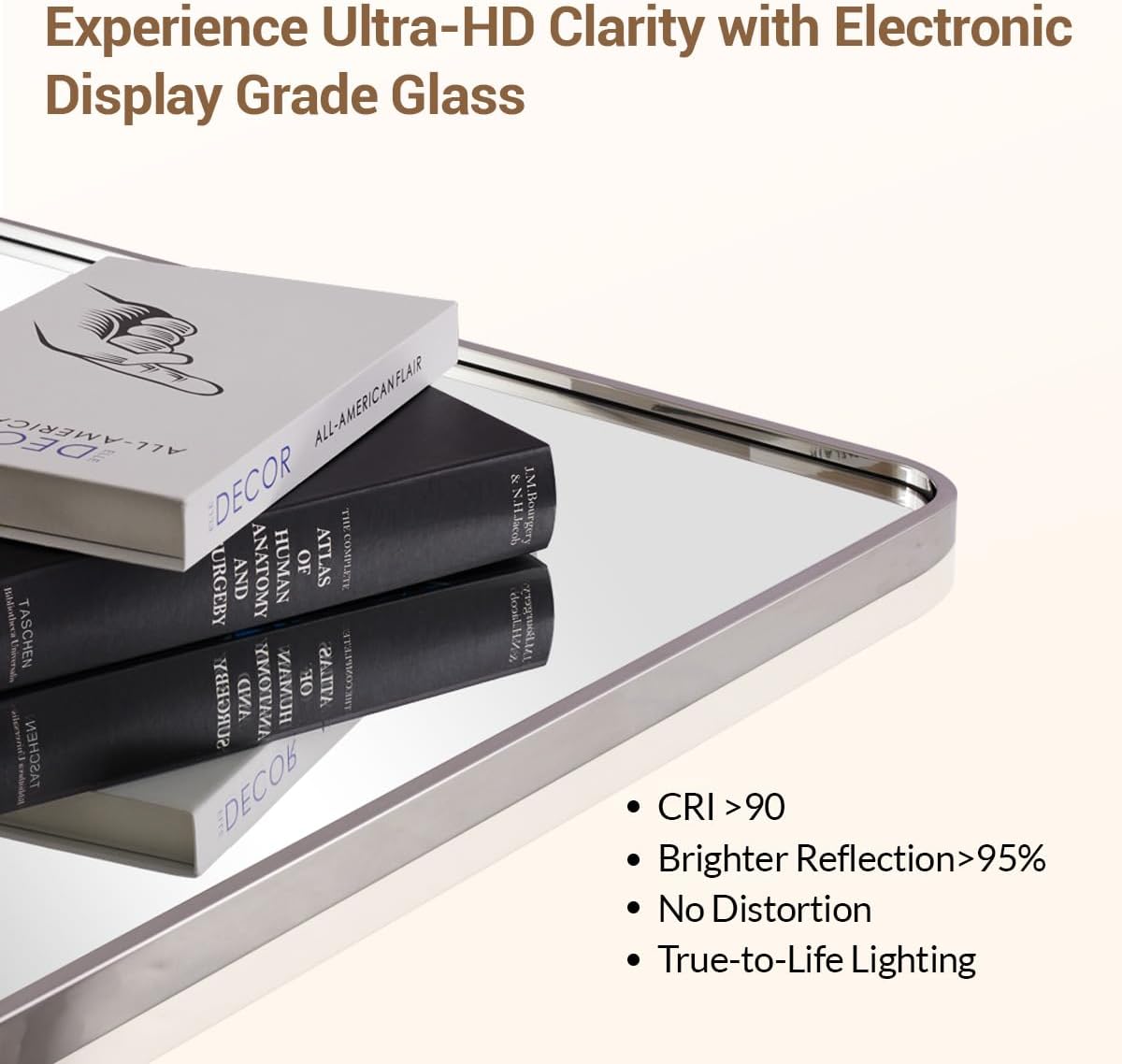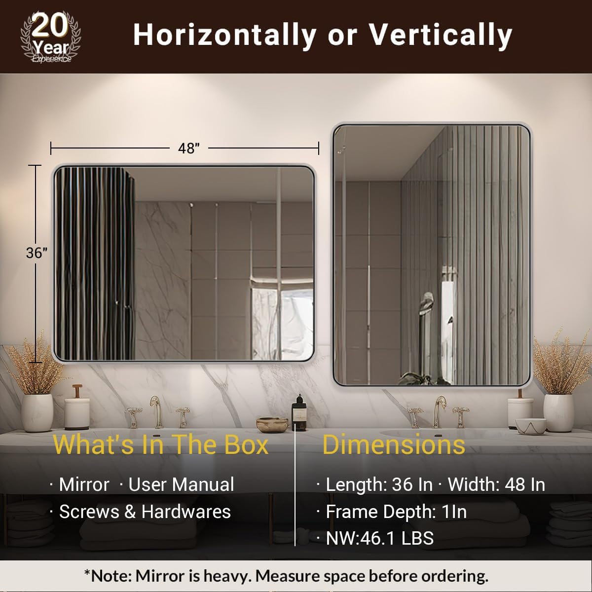 ANDY STAR 48x36 Inch Chrome Mirrors for Bathroom, Chrome Bathroom Vanity Mirror, Rounded Rectangle Mirror, Anti-Rust SUS304, Seamless Tube Metal Frame, 1’’ Deep Wall Mounted Vertically/Horizontal