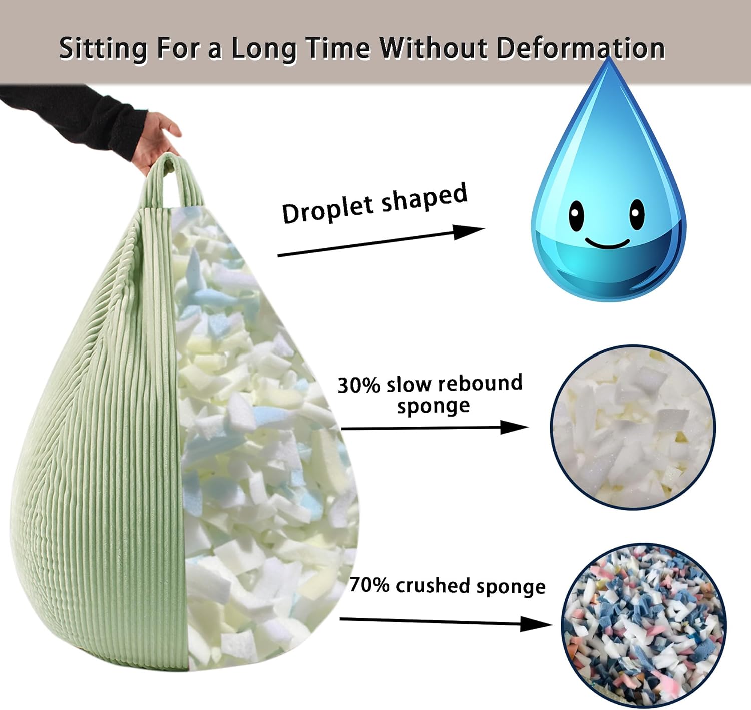 - High Rebound Memory Foam: Our bean bag chair is filled with patented shredded cotton technology. The memory foam is easy to rebound, highly durable, and maintains its shape during prolonged use. Due to compression, it may take up to 48 hours to fully expand and realize its potential.