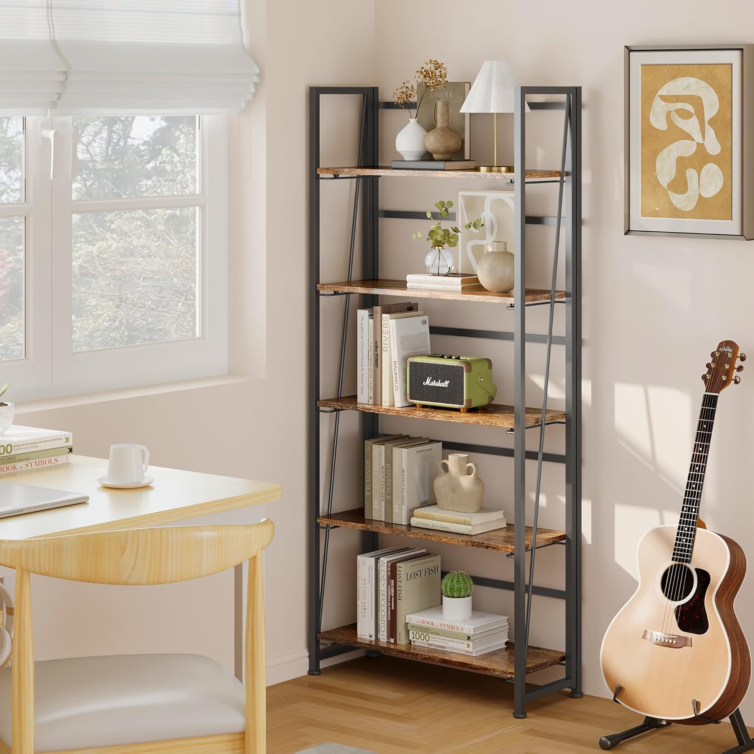 BHG Vintage Multifunctional Folding Bookshelf, No-Assembly Plant Stand Storage Rack Shelves for Home Office (Fire, 5-Tier)