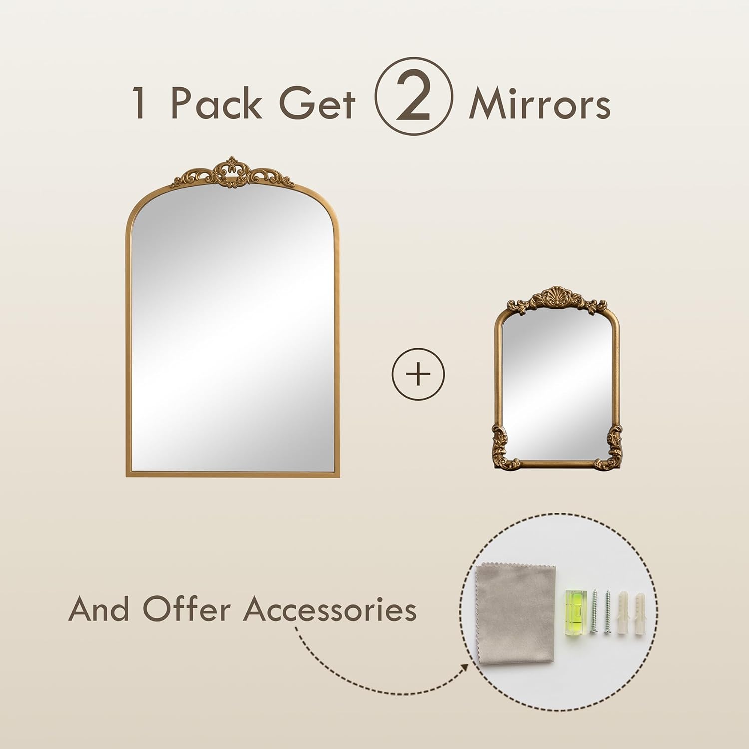 - Baroque-inspired Design: This vintage gold arch mirror with oranate baroque design that adds a touch of glam elegance and sophistication to home space. The antique brass decoration will be an ideal choice for your traditional mirror just like expensive designer boutiques