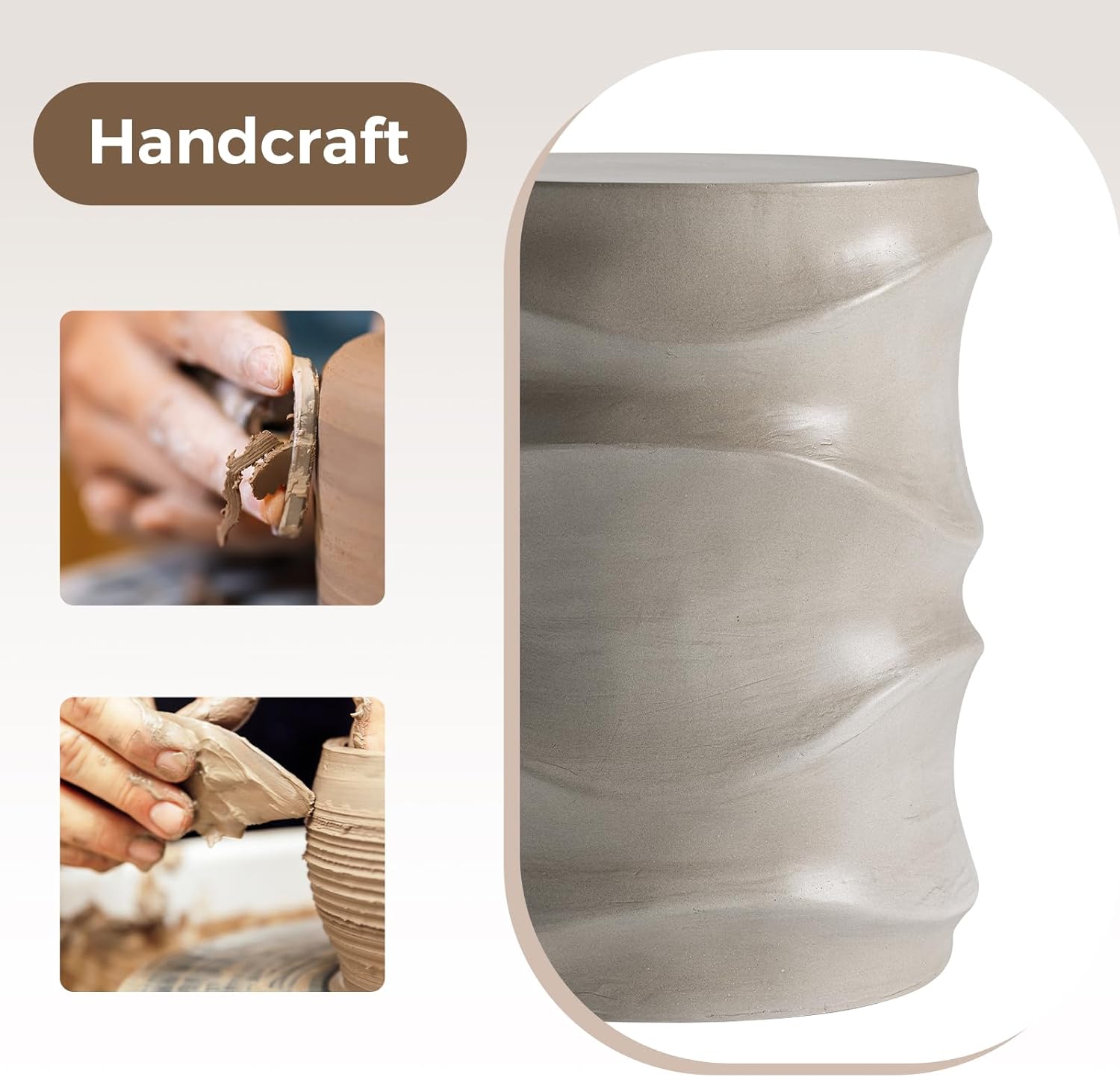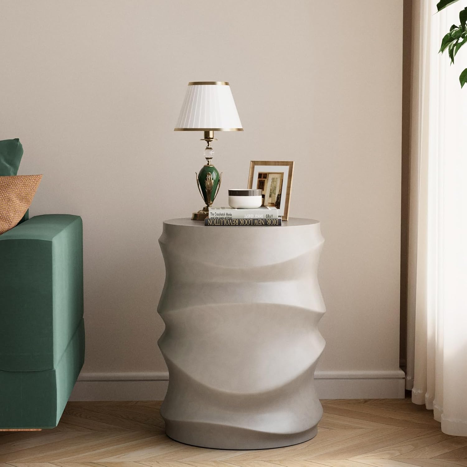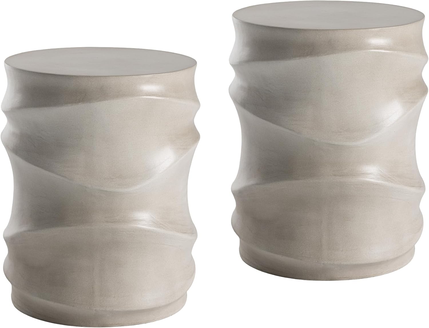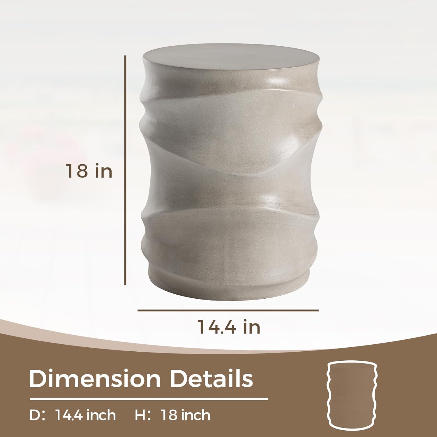 COSIEST Set of 2 Outdoor Side Table, 2 Pieces Concrete Table for Patio, Streamlined Lightweight Accent Decorative Patio Garden Stools, Plant Stand Drum Table, Round, Grey