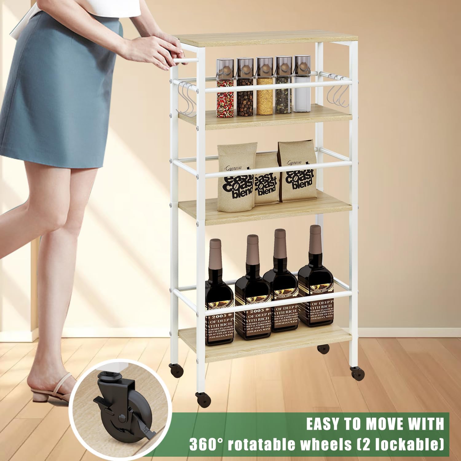 - 【4-Tier Storage】This slim storage cart on wheels has 4 tiers of storage for all your essentials. It is ideal for organizing kitchen spices, coffee bean canisters, bathroom and laundry supplies, and even office essentials.