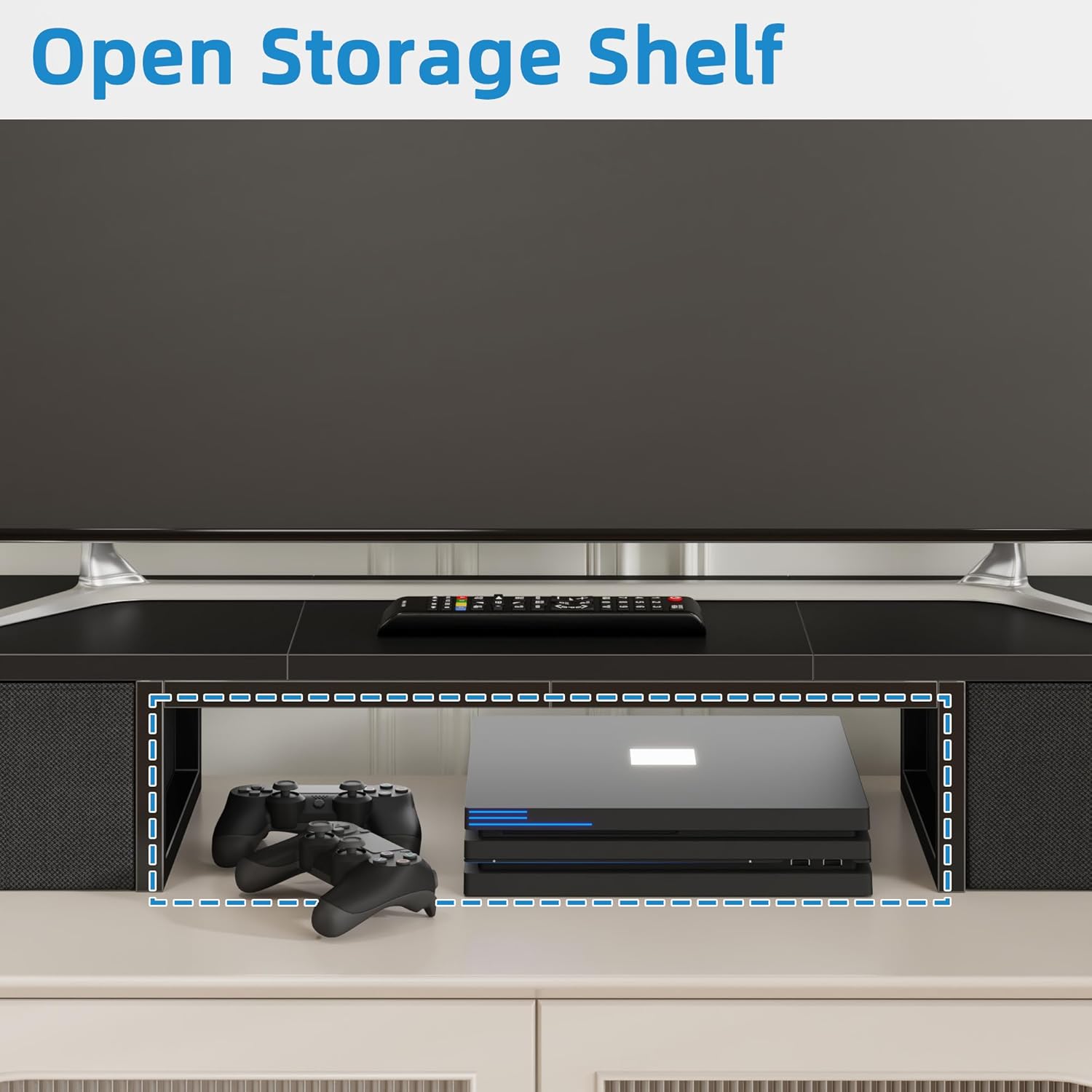 - 【Middle Open Storage Space】Keep your DVD player, tv box, audio receiver, soudbar and gaming console in the middle open storage space. Get rid of messy tabletop just in seconds.