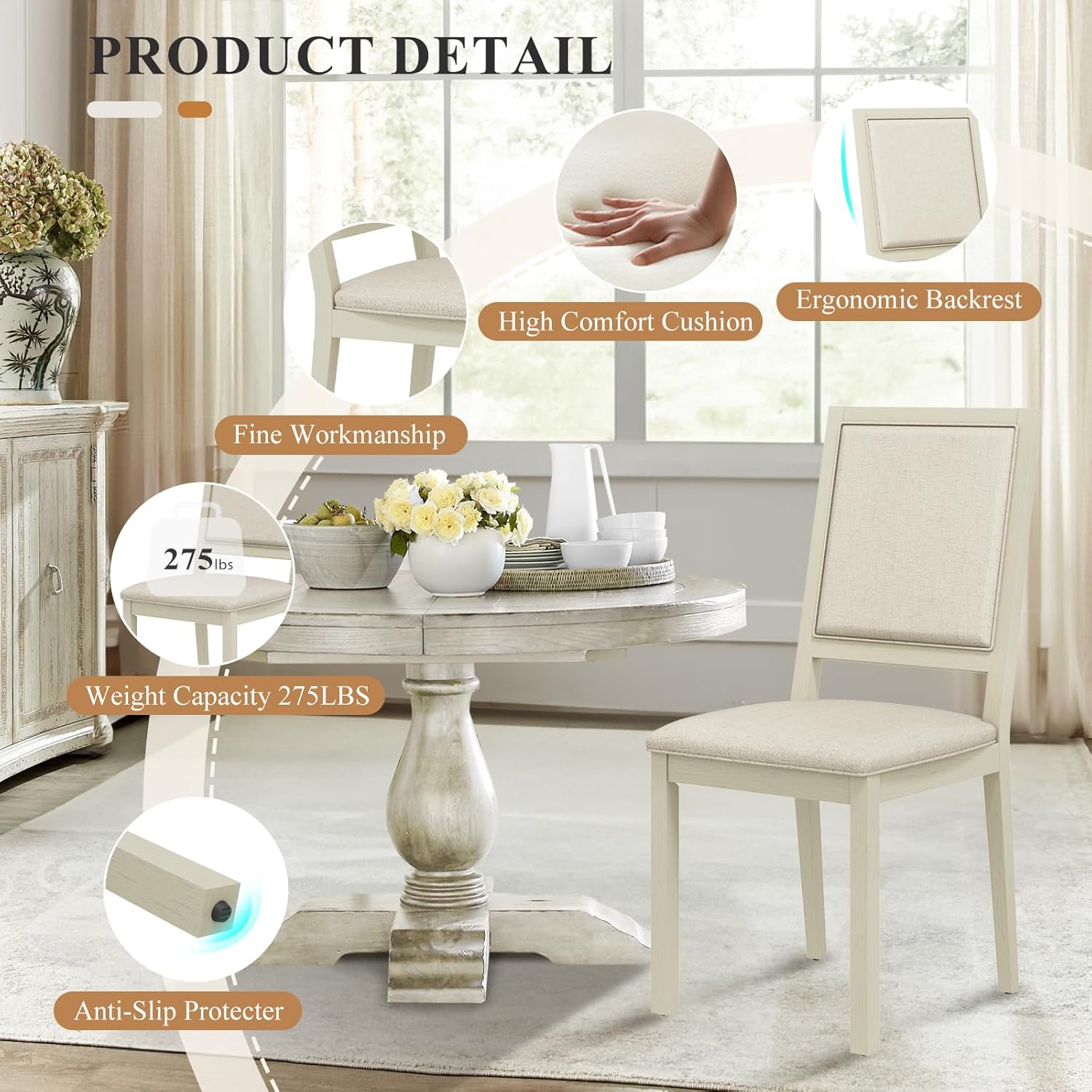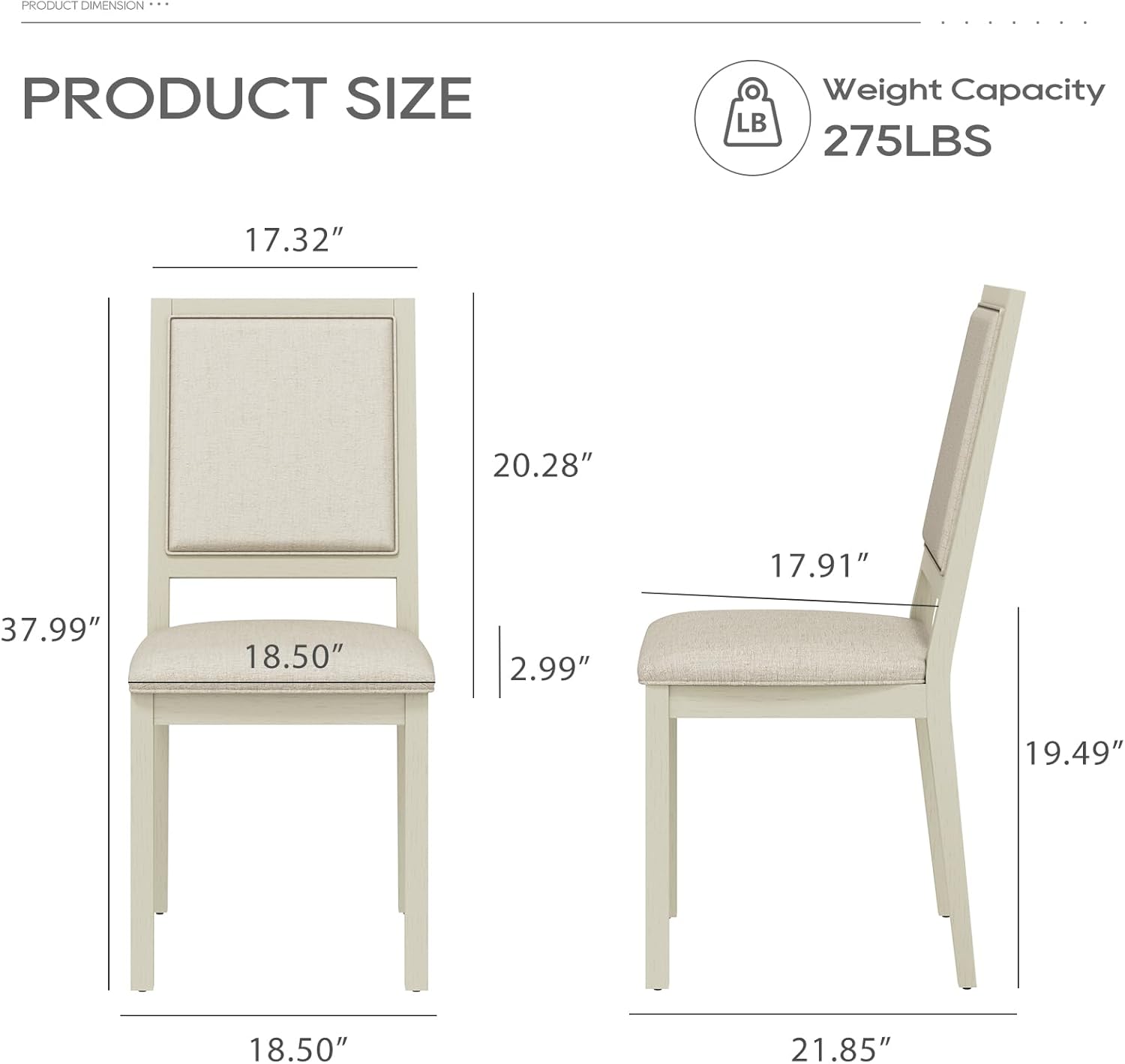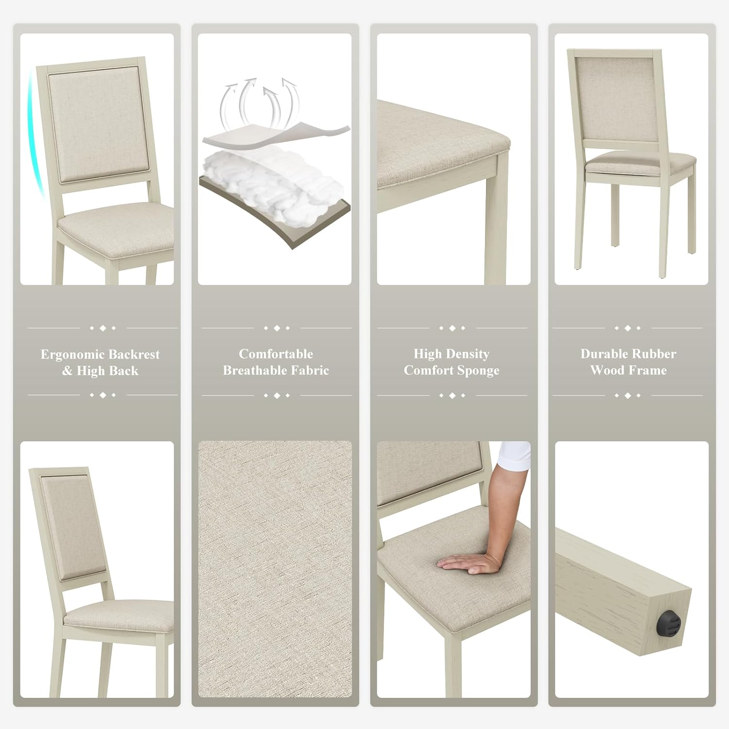 - 【Modern Upholstered Dining Chair】Upholstered 19 inch dining chairs add a touch of elegance and sophistication to any dining room.The padding and support provided by upholstered kitchen chairs make them a great choice for families and business places,as they are comfortable and safe for people to sit in during meals or activities.Wooden dining chairs with upholstered backs add a touch of warmth to a dining room, creating a cozy and inviting atmosphere for family meals or dinner parties.