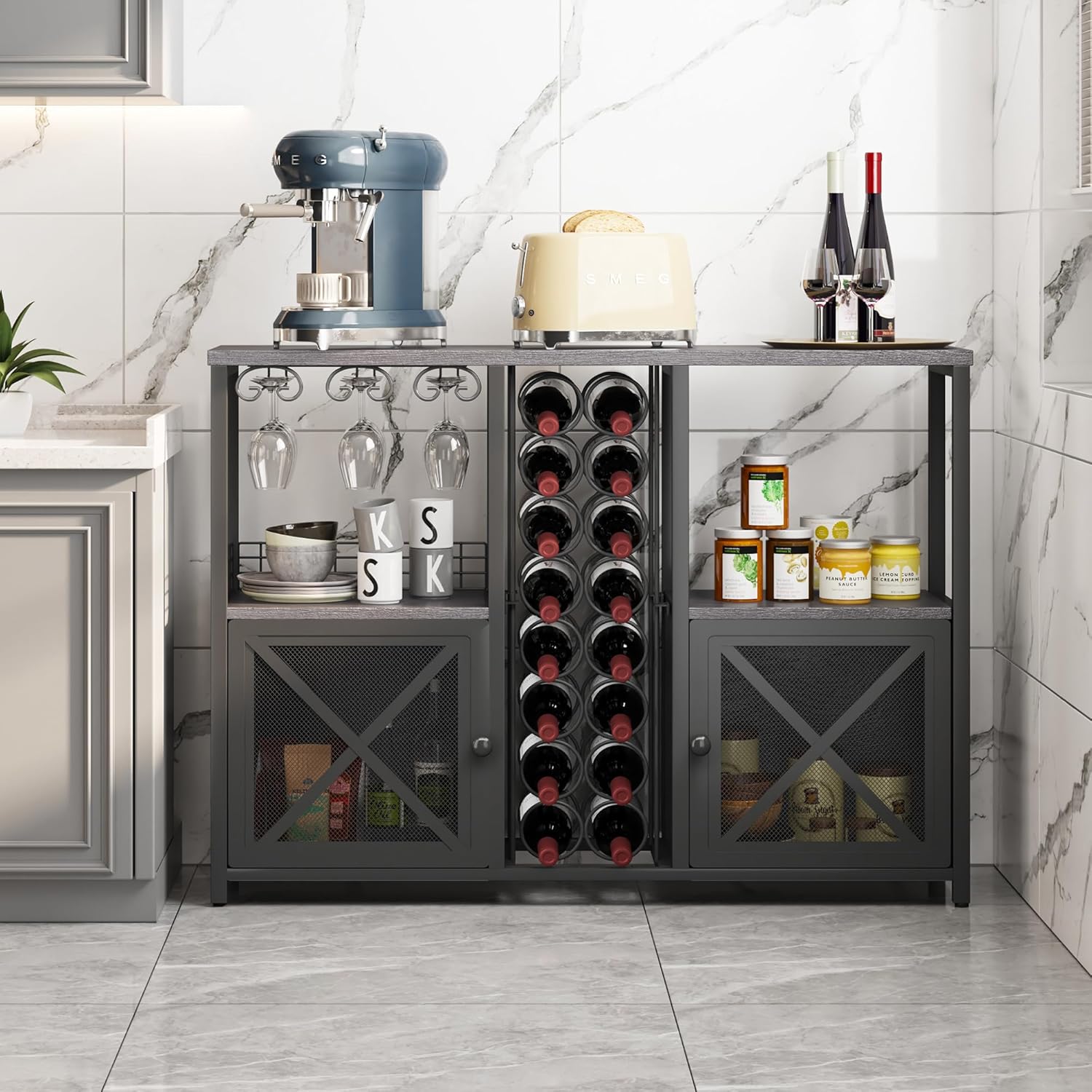 - [Multifunctional Wine Bar] This wine cabinet adopts a mesh door design and with a magnetic self-locking device, which realizes the functions of visualization and ventilation. Not only suit for wine lovers, but it can be as coffee bar station, storage cabinet, sofa console table or buffet sideboard. Whether be placed in the living room or dining room and kitchen, itβs chic style blends well with almost all home decor.