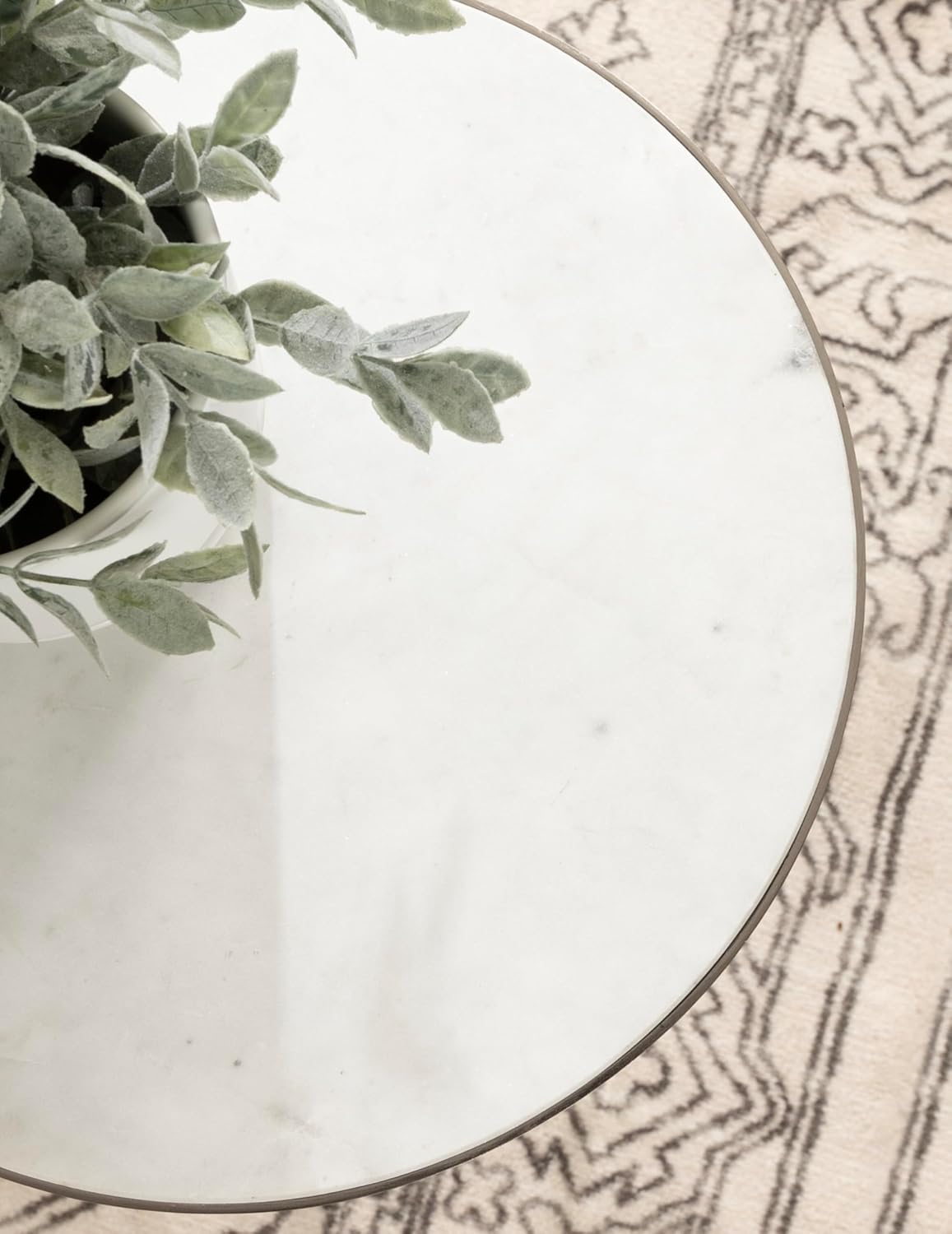 - Marble Side Table: The Gribben living room table features a metal base and an authentic marble tabletop, meaning each table has unique variations within the stone