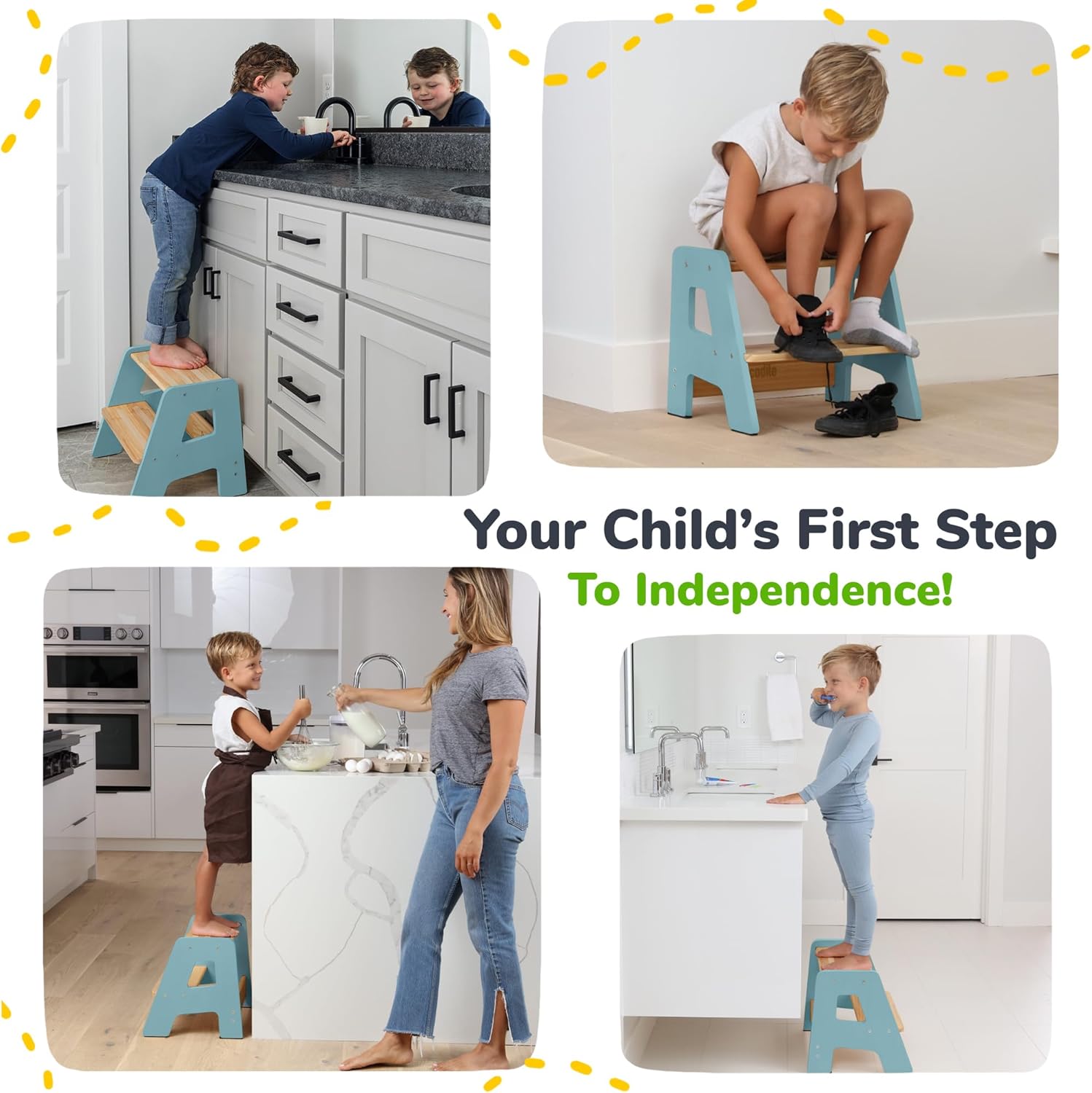 - Water-Resistant for Bathroom Use - Sealed wood surfaces and non-slip strips resist moisture and splashes, making this a reliable toddler stool for bathroom routines like hand washing or teeth brushing at the bathroom sink.