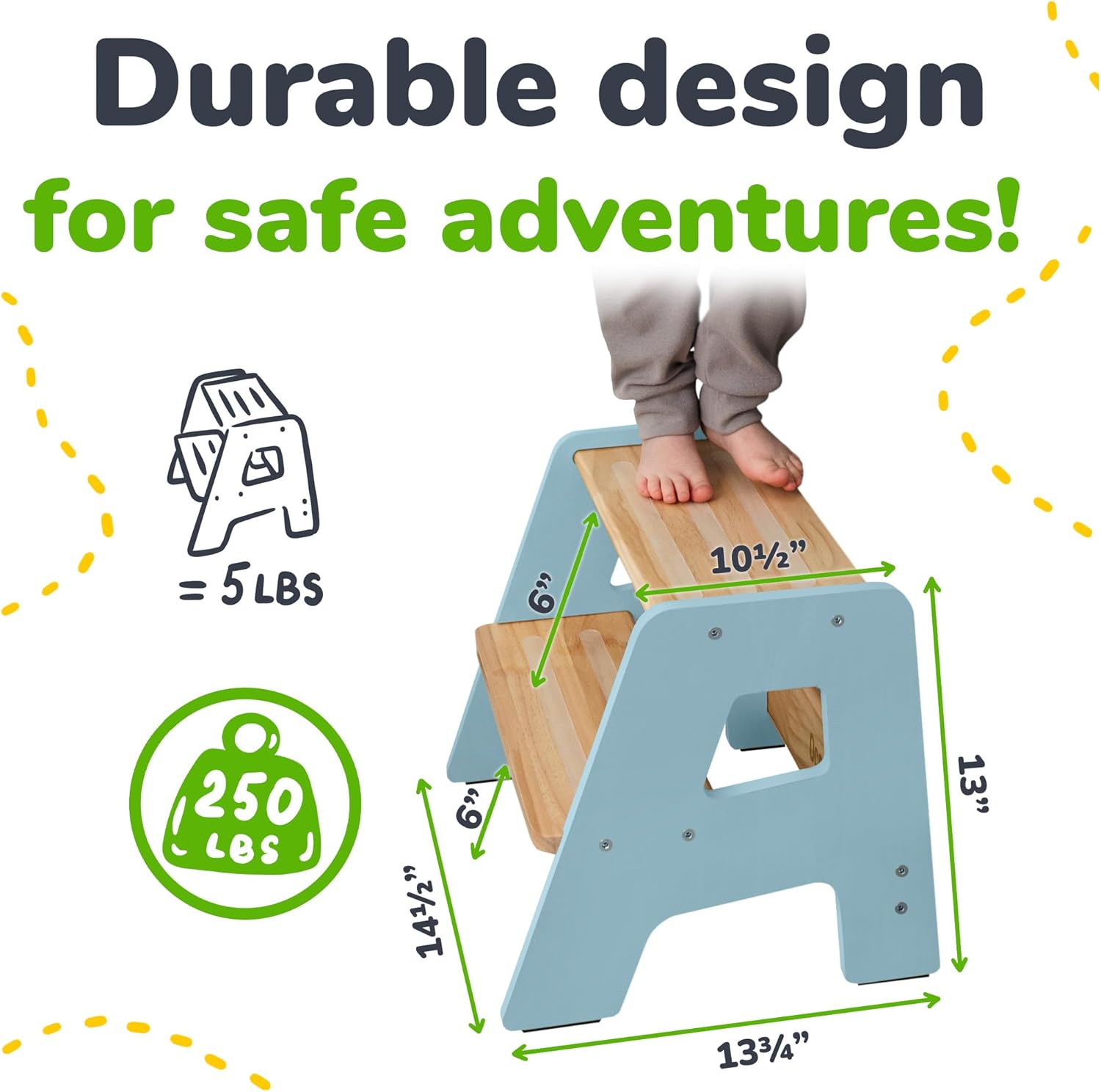 - Holds Adult Weight, Built to Last - Though crafted for children, this wooden step stool supports up to 250 lbs. Use it as a step stool for toddlers or a sturdy helper for adults around the home.