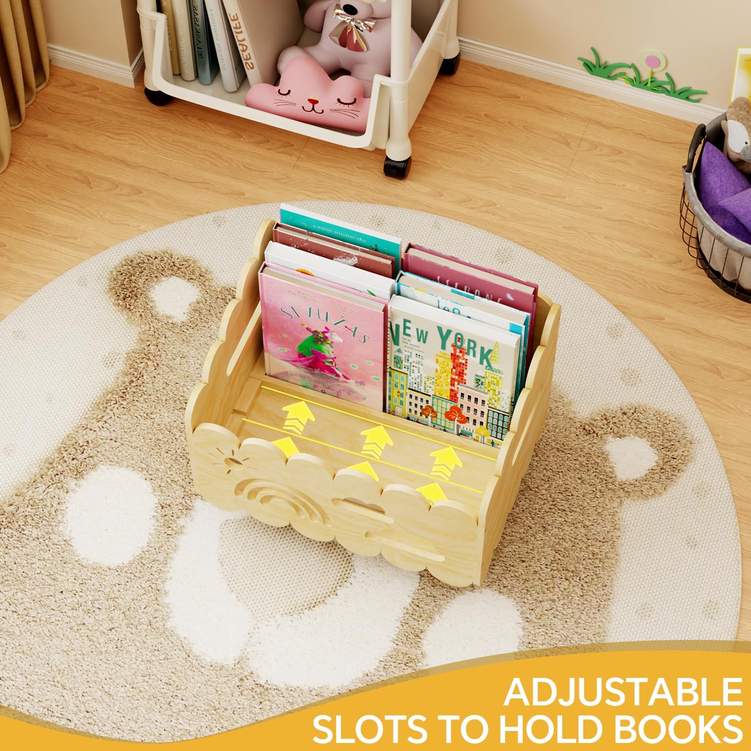 Wood Kids Bookshelf, Montessori Bookshelf, With 2 Adjustable Dividers, Suitable Kids Rooms, Nursery & Classroom, Kids Bookshelf And Toy Storage, Toddler Book Rack, Nursery Book Shelves, Kids Bookcase