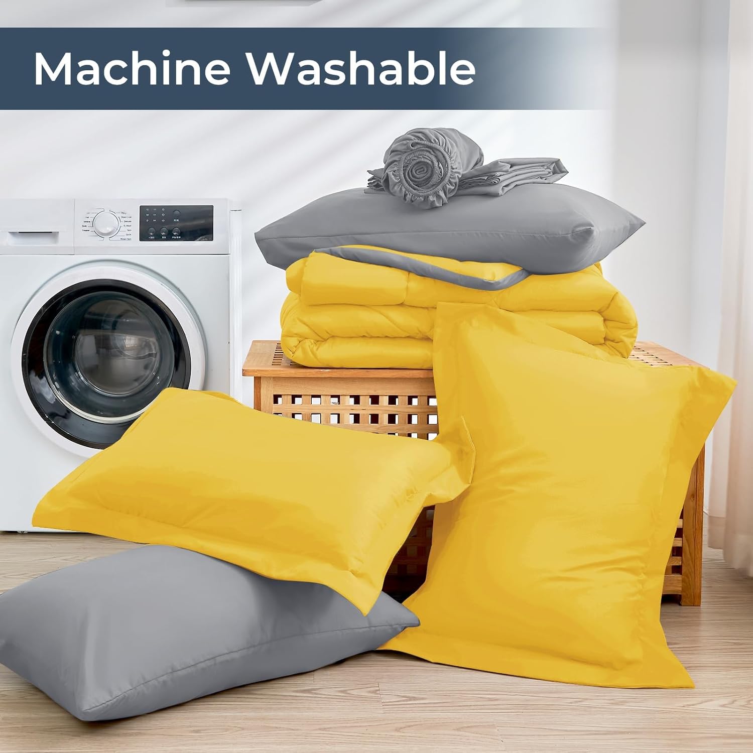 HEVUMYI Full Comforter Set - 7-Piece All Season Bed in a Bag Full, Ultra Soft Bedding Set with Comforter, Flat Sheet, Fitted Sheet, Pillowcases, Pillow Shams, Yellow & Light Grey