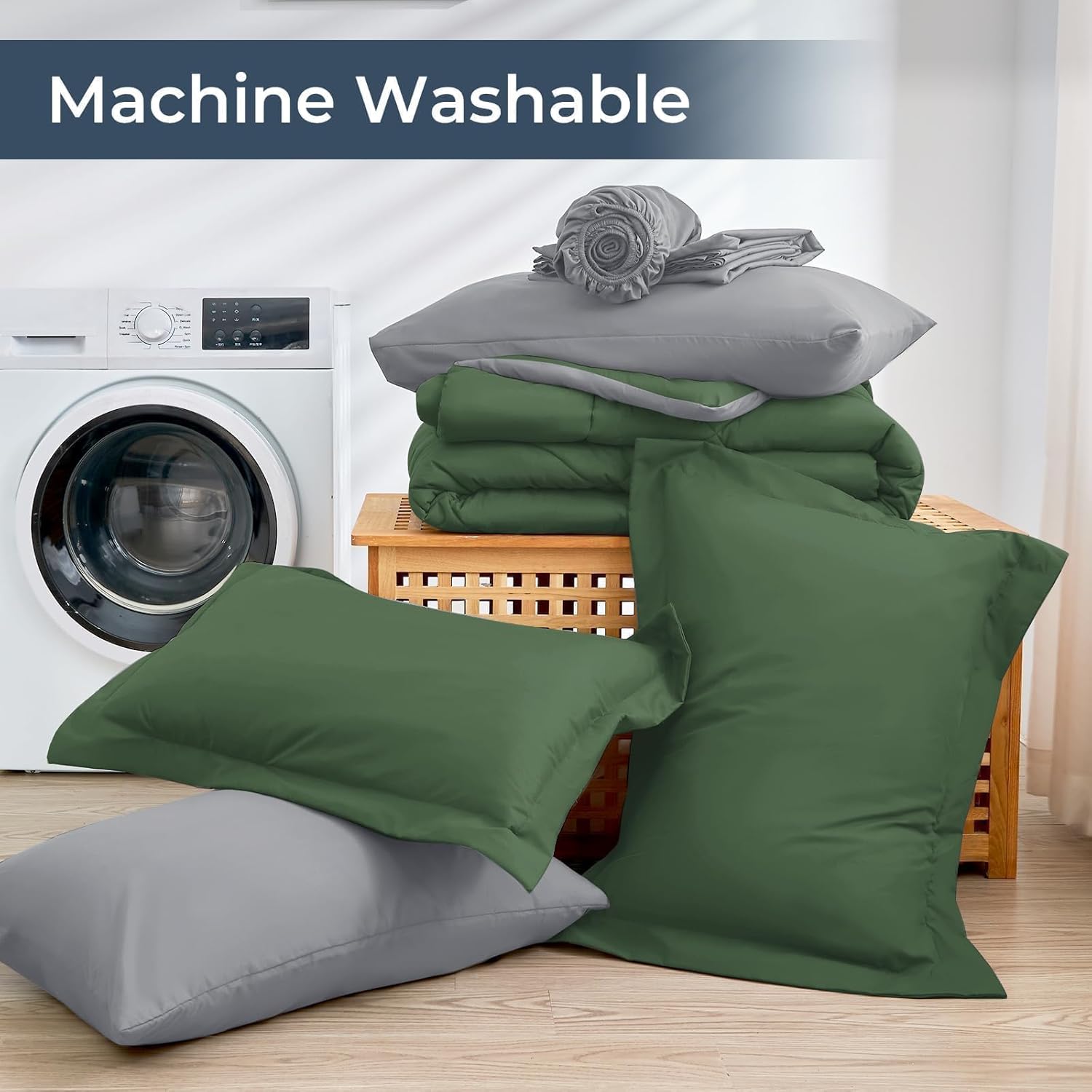 HEVUMYI Cali-King Comforter Set - 7-Piece All Season Bed in a Bag Cali-King, Ultra Soft Bedding Set with Comforter, Flat Sheet, Fitted Sheet, Pillowcases, Pillow Shams, Green & Light Grey