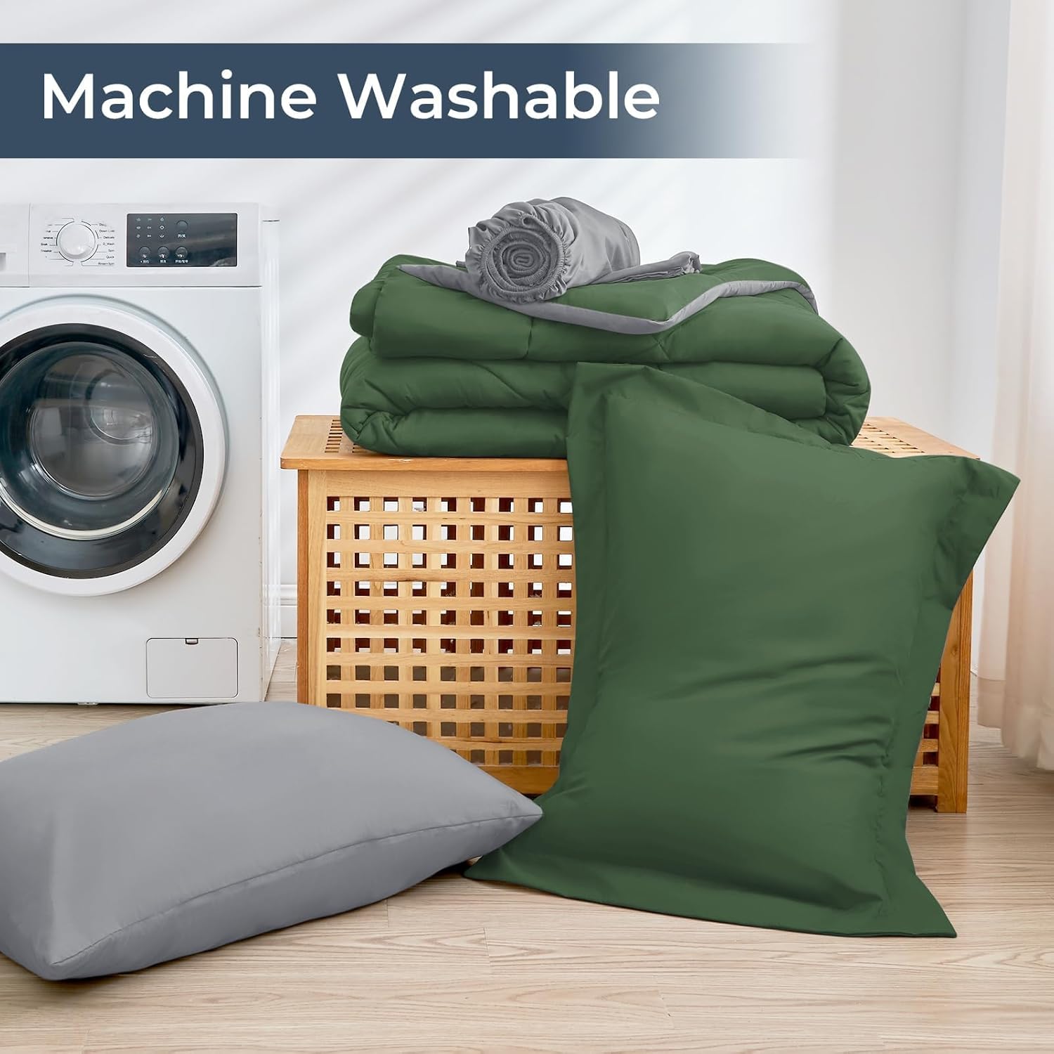 HEVUMYI Twin Comforter Set - 5-Piece All Season Bed in a Bag Twin, Ultra Soft Bedding Set with Comforter, Flat Sheet, Fitted Sheet, Pillowcases, Pillow Shams, Green & Light Grey