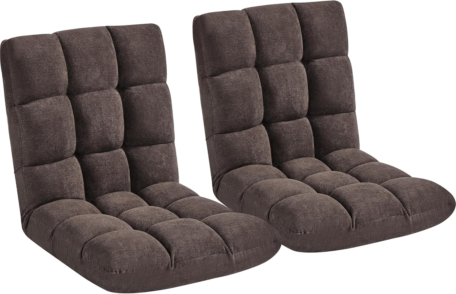 Yaheetech Floor Folding Chair with Back Support, Padded Folding Gaming Sofa Chair with 14 Adjustable Backrest, Adults Couch Recliner, Floor Seating Lounge Chair, Armless Meditation Chair, Brown, 2PCS