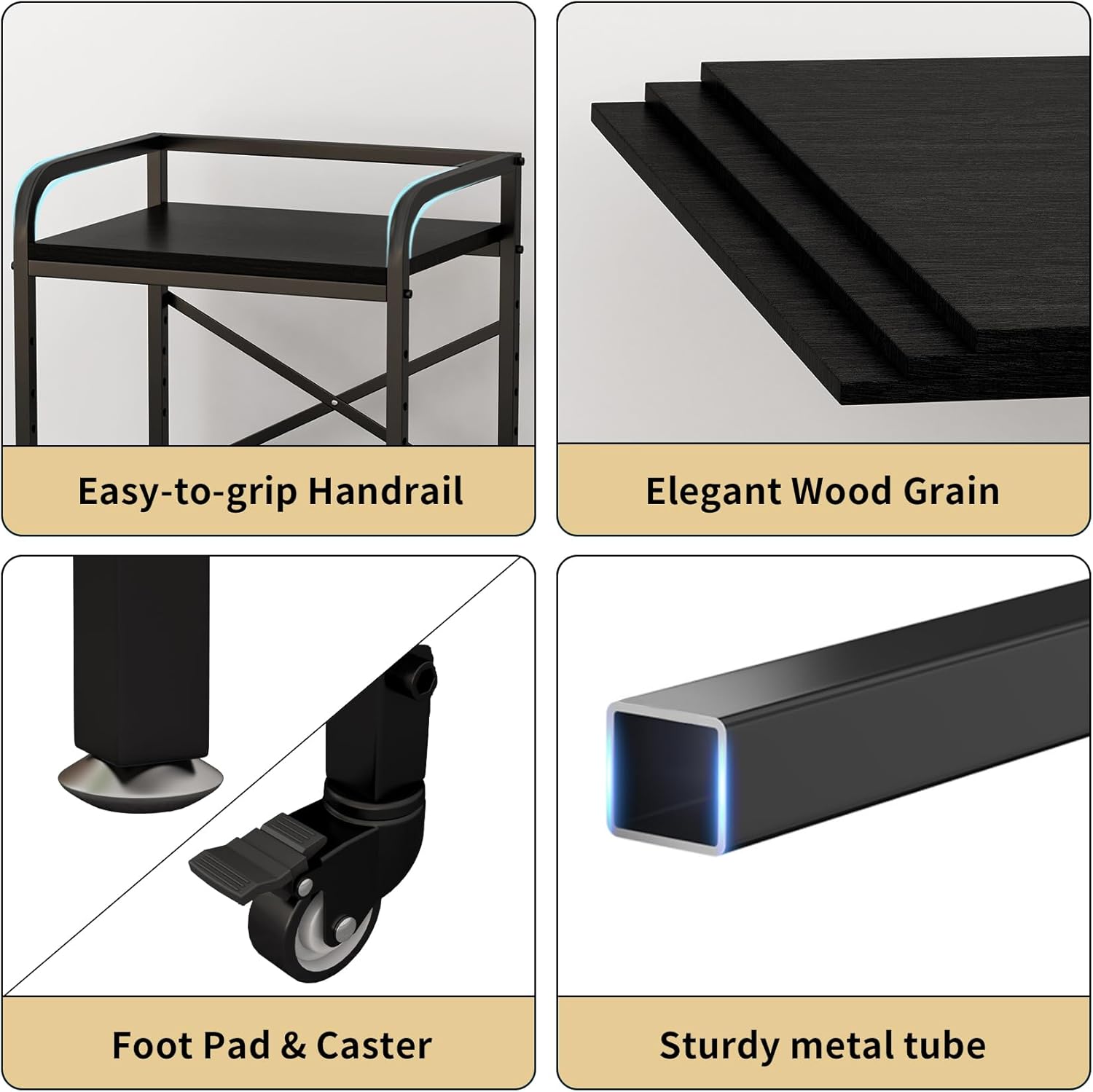 - Space-Saving & Flexibility: This versatile under-desk printer cart features a 5-level height adjustment, with the flexibility to detach each shelf individually. To save space, simply lower the shelf and slide your printer under the desk.