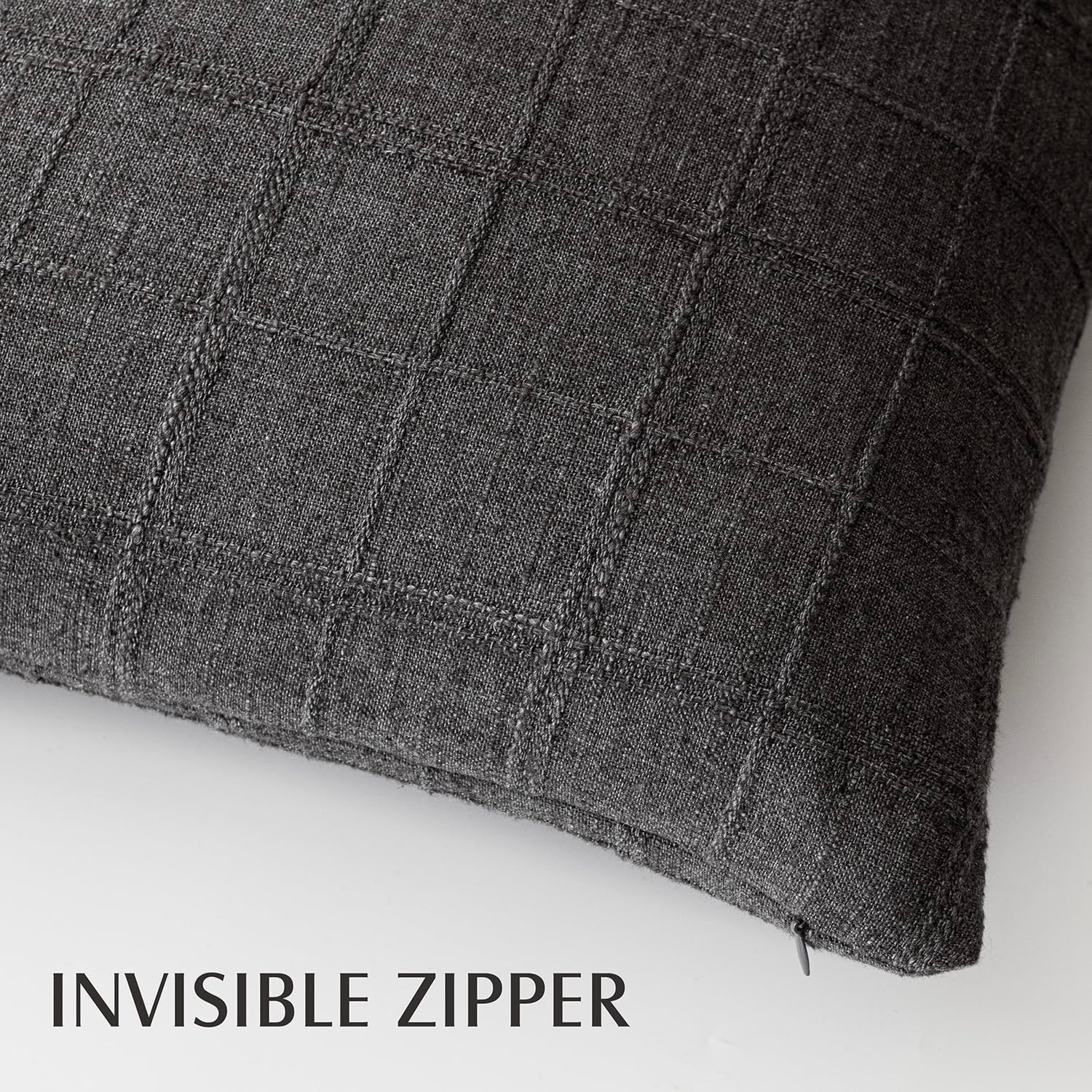 Foindtower Set of 2 Decorative Linen Check Throw Pillow Covers Neutral Farmhouse Vintage Cushion Covers Modern Boho Home Decor for Sofa Chair Couch Bedroom Living Room Outdoor,20×20 Inch,Charcoal