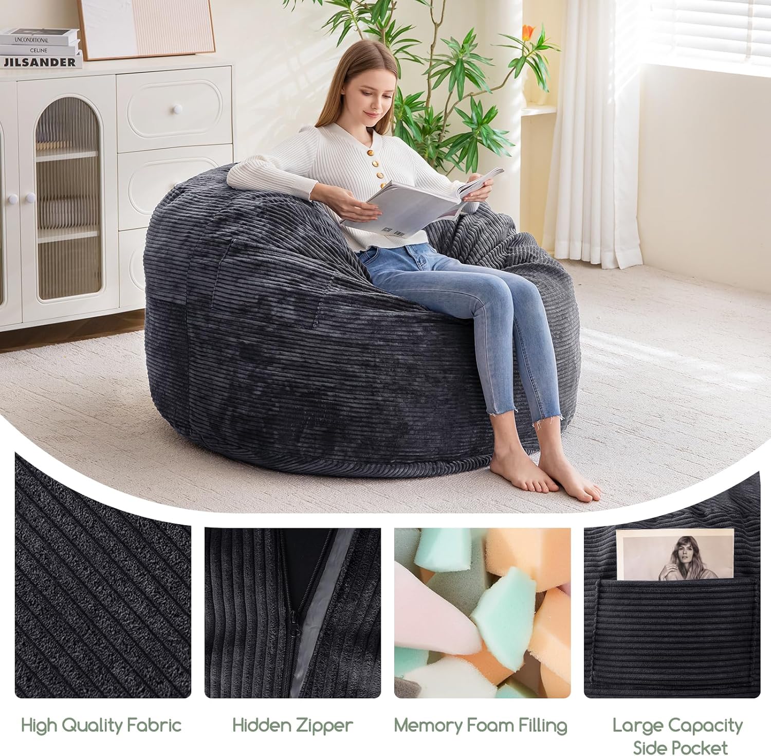 - Washable & Comfy Cover: The outer cover of the bean bag chair is made of breathable premium corduroy fabric, soft, cozy, skin-friendly and durable. The bean bag chair outer cover is all easily removable and you can easily wash the cover to make it look like new again. The bean bag bed's outer cover is made of high-grade Dutch velvet, plush and plush, detailed texture, soft touch.