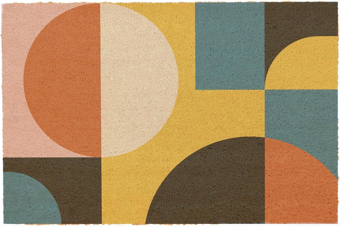 Funny Coir Doormat Simple Modern Abstract Geometric Front Door Mat Entryway Outdoor Mat with Heavy Duty Front Porch Welcome Mats Entry Natural Coconut Brown Mat Novelty Gift Doormat 23.7 x 15.7 inch