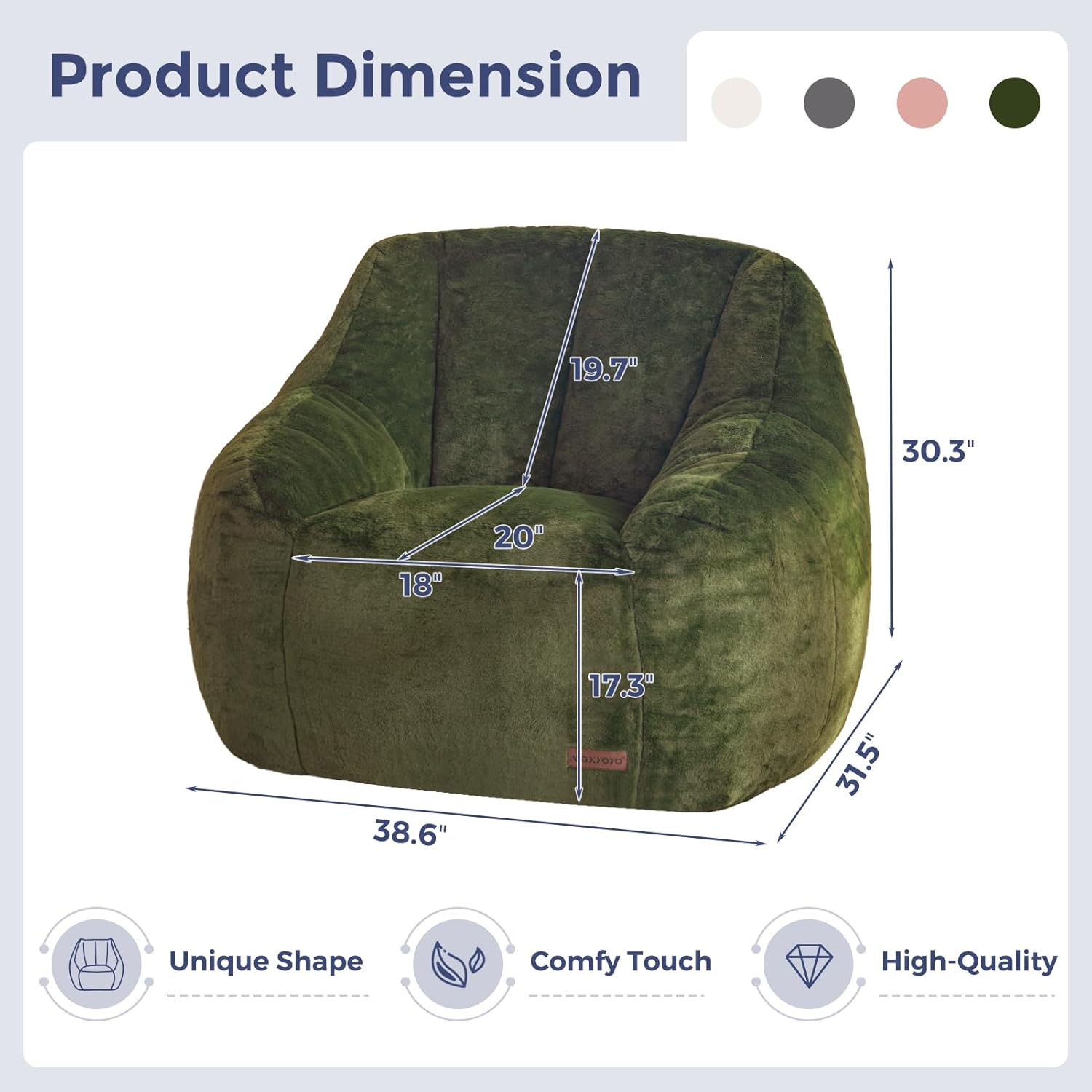 - High Density Shredded Foam: The interior of bean bag chair is made of high-quality fluffy shredded foam, which is highly resilient and support, ensuring lazy sofa comfort while ensuring excellent support