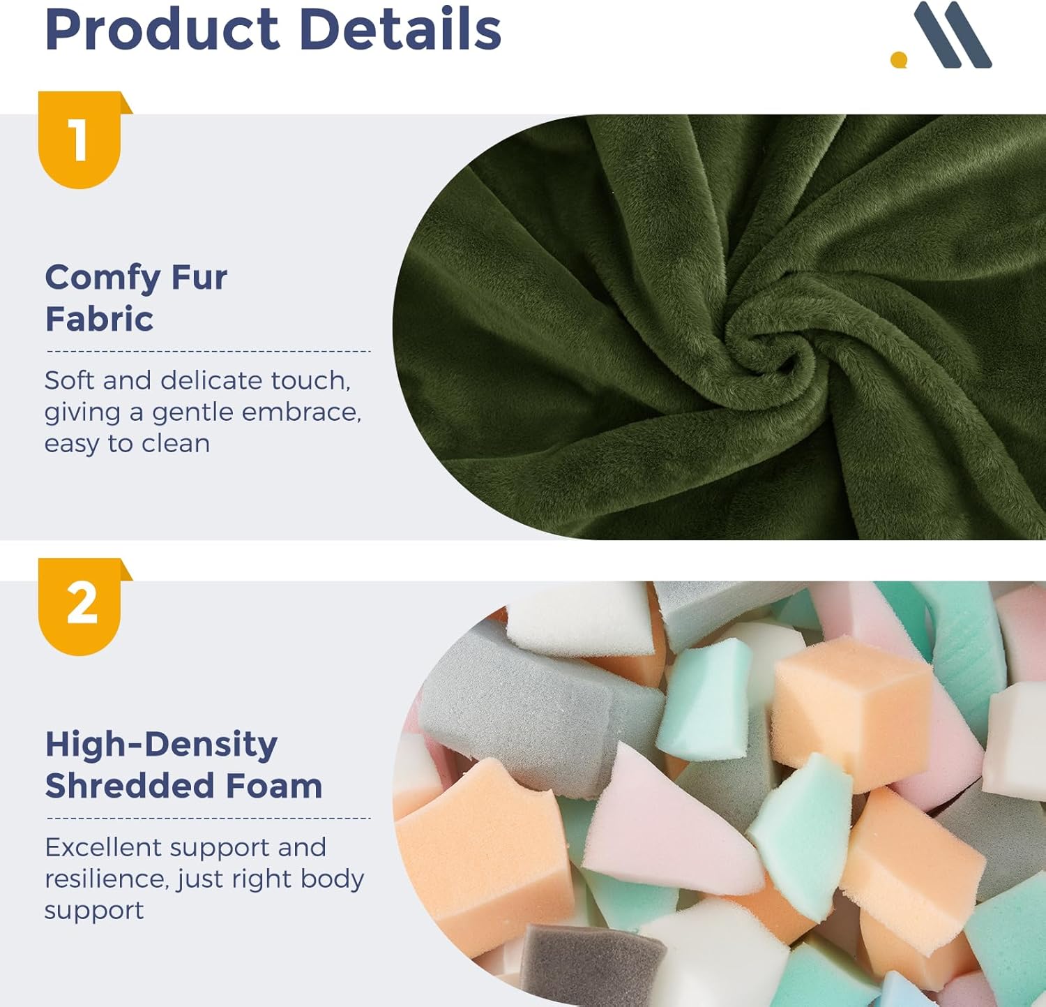 - Material Faux Fur : Fill Material Shredded Foam