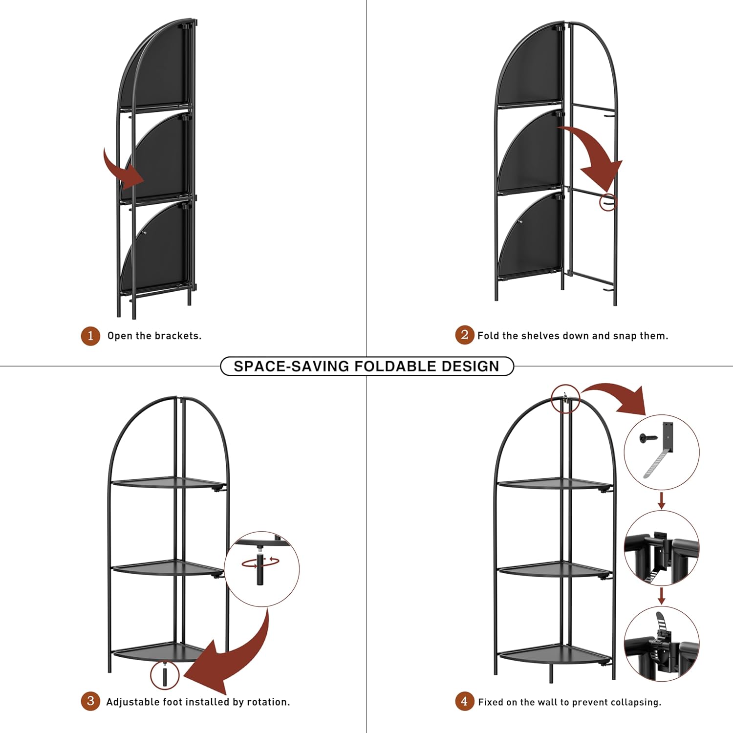 - 【Foldable Design And Effortless Assembly】Our Crofy corner shelf can be folded to store when not in use. You can fold or unfold it in a few seconds without any assembly. With its foldable design, it only takes up a small space, which can save your space.