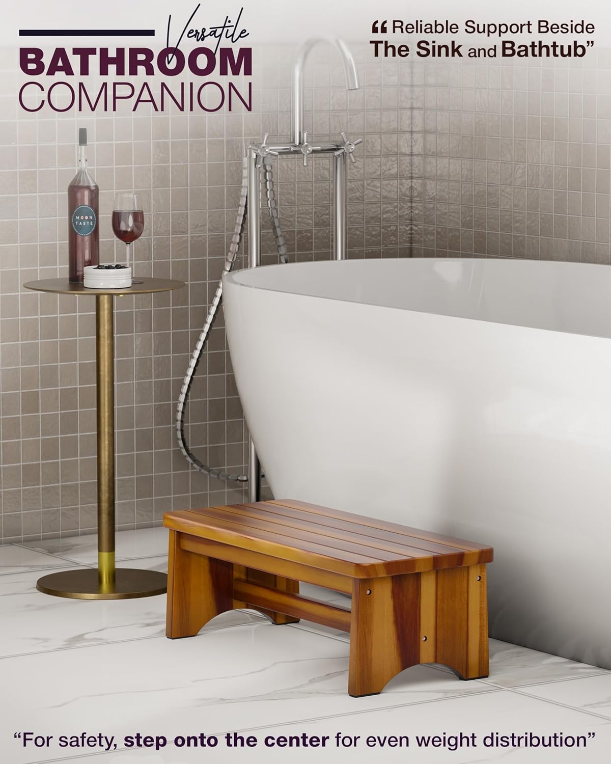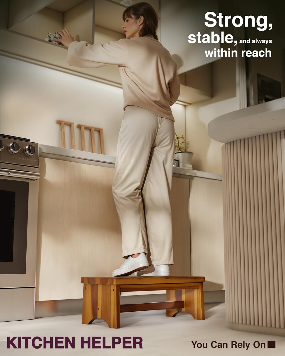 - π³ PREMIUM NATURAL ACACIA WOOD: Expertly crafted from high-quality Acacia wood, this step stool offers superior water resistance, exceptional durability, and a naturally elegant wood grain finish that enhances any room's decor.