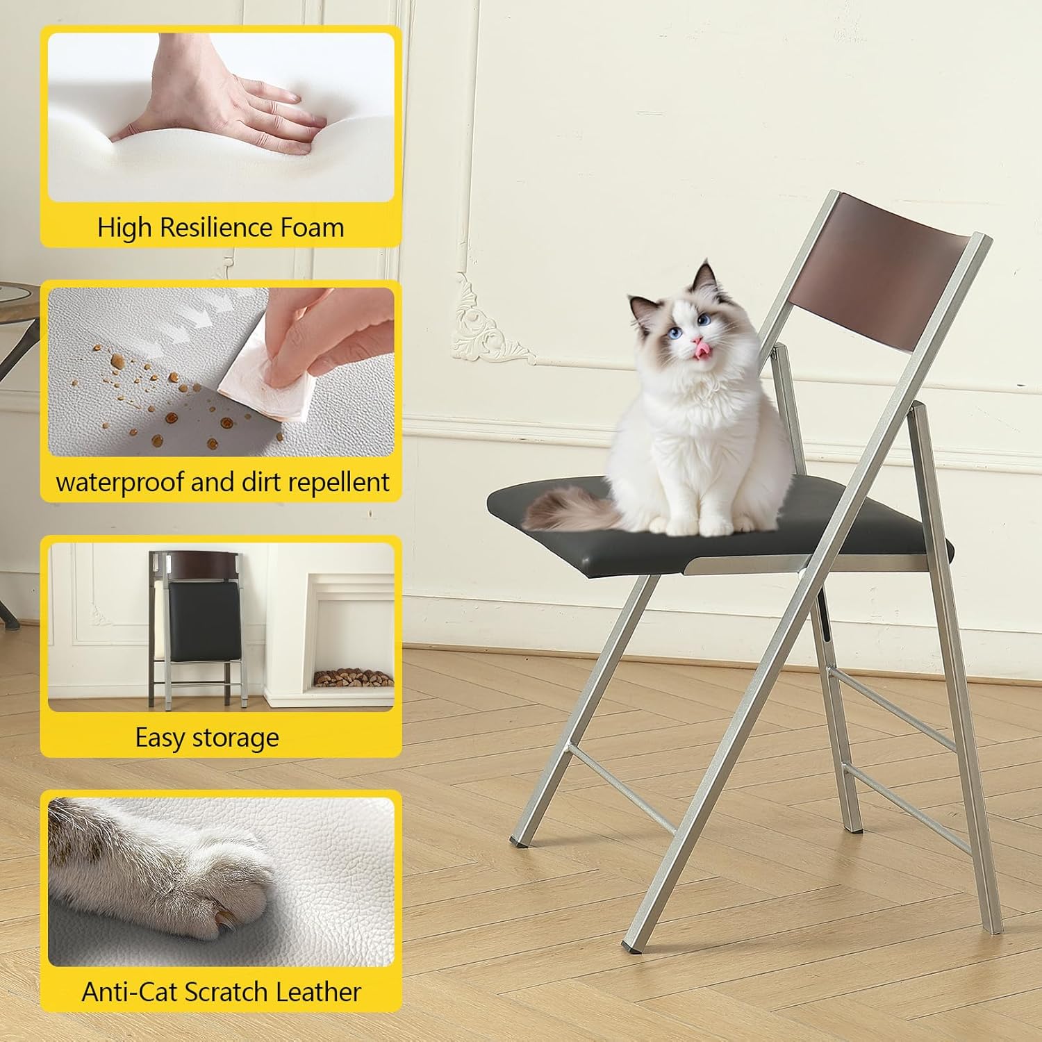 - 【Cloud Padded Seat - 8+ Hour Comfort】 Thicker than typical metal folding chairs, our metal folding chairs with cushion use high-resilience comfortable sponge + waterproof leather. Ergonomic curve fits dining tables perfectly, reducing hip fatigue during extended meals – why choose hard stackable folding chairs when comfort matters.