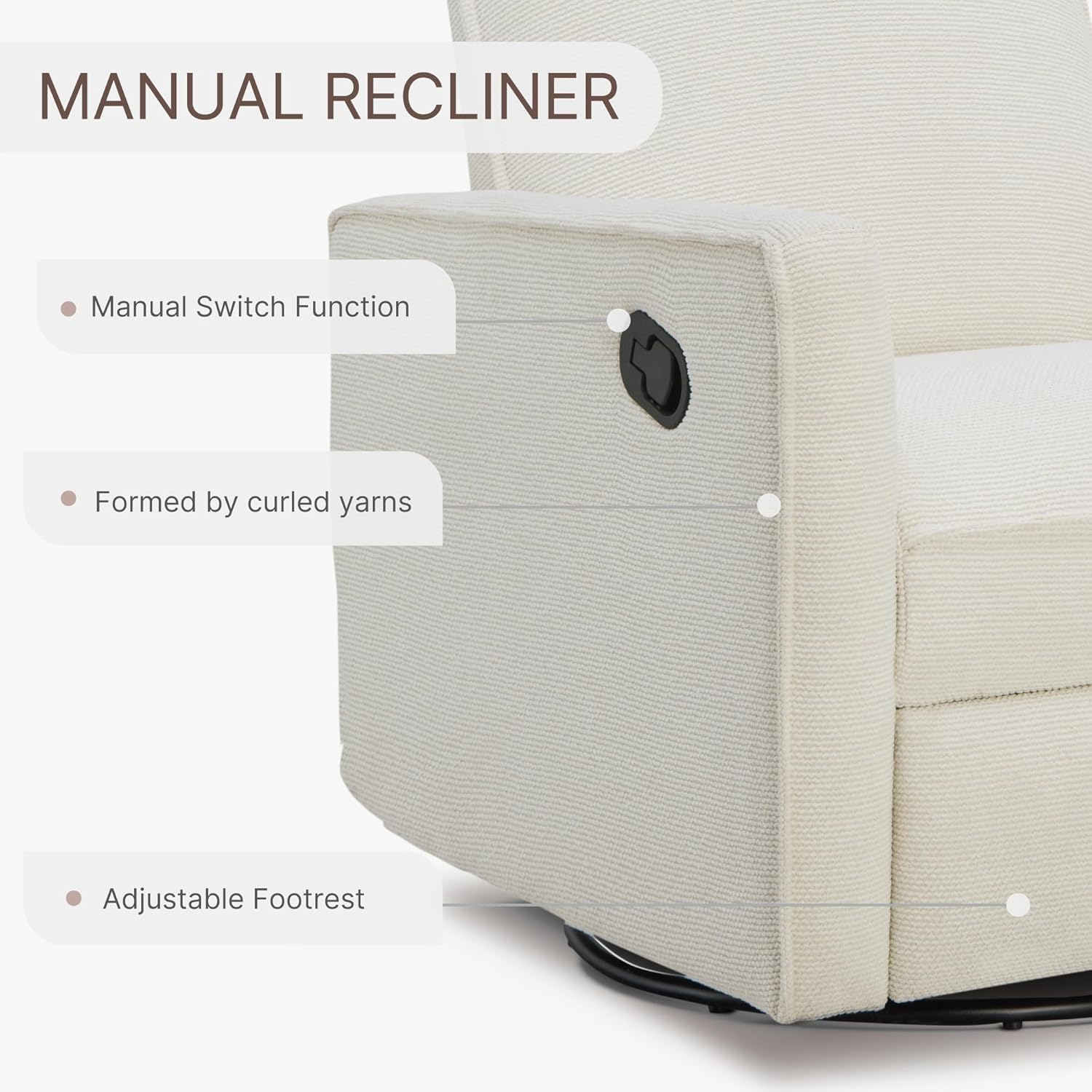 Upholstered Recliner Swivel Glider Nursery Chair Reclining Performance Fabric Rocker with Metal Base,Basketweave,Cream